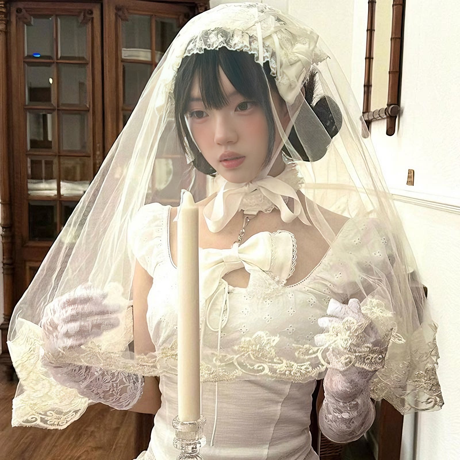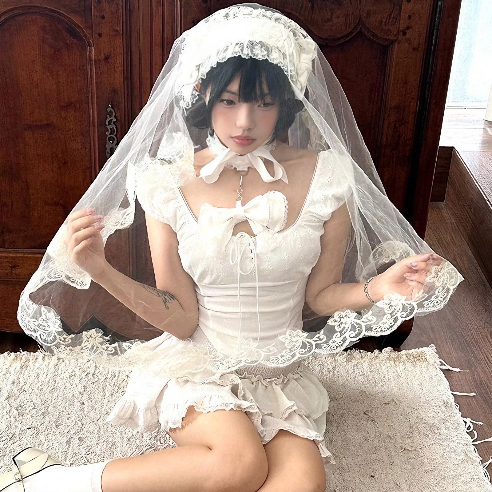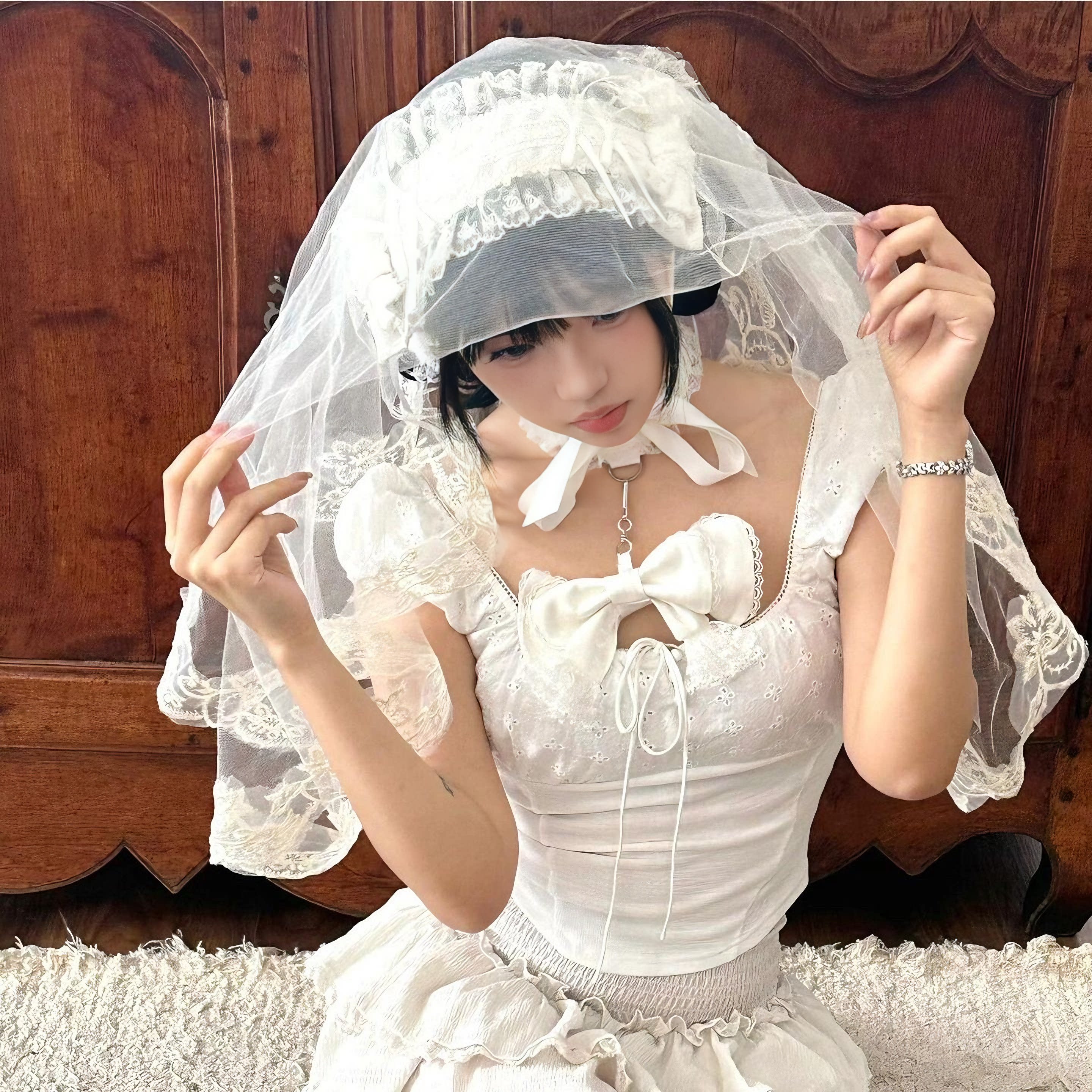 鬼新娘cos白色头纱女成人头饰婚纱万圣节穿搭白哥特风lolita装 扮