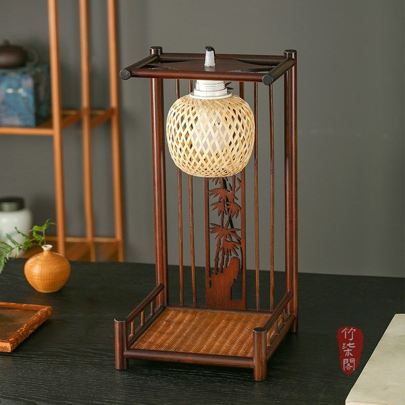 新中式 禅意灯笼桌面摆件茶室氛围灯竹制工艺品 纯手工竹编台灯中式