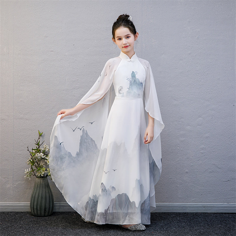 儿童古筝演出服女大童礼服夏季 古典中国风仙气气质艺考长裙 水袖