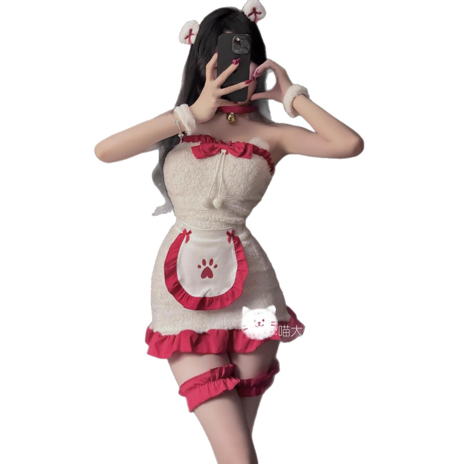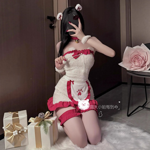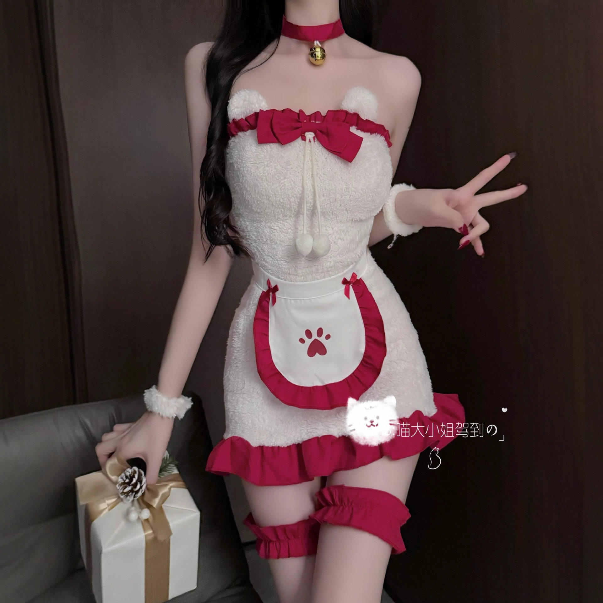 圣诞节服装 毛绒氛围感抹胸包臀裙圣诞连衣裙 性感纯欲可爱女仆装