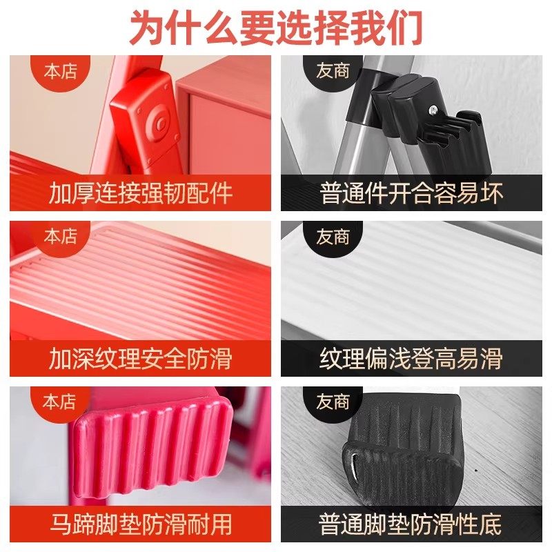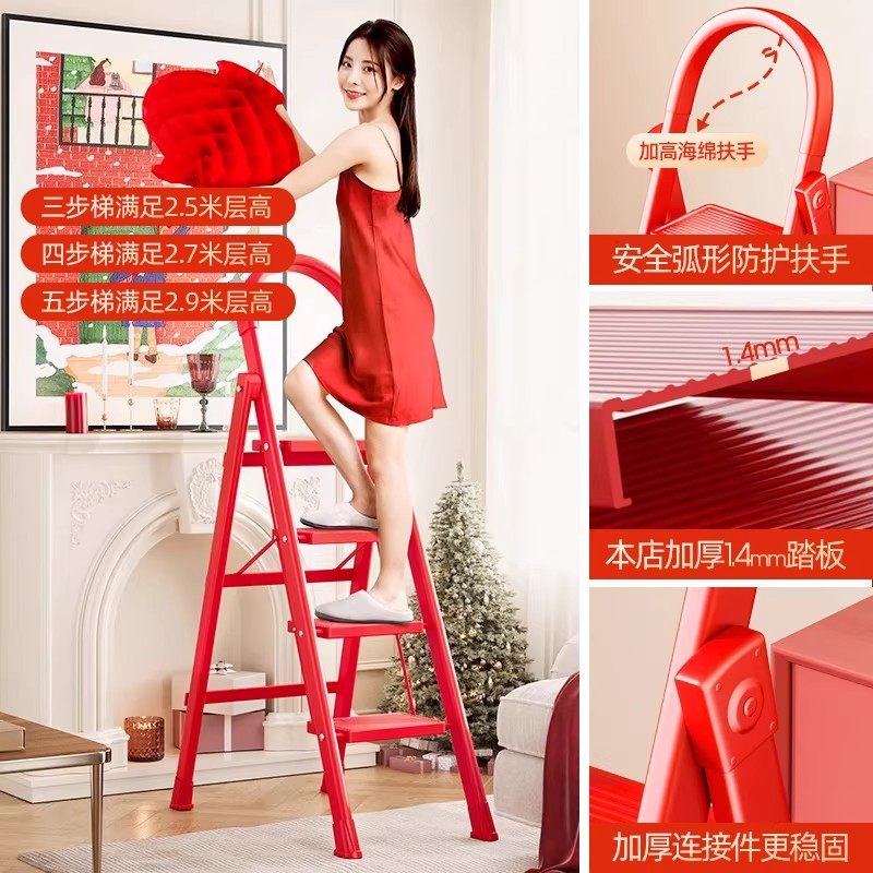 德国乔迁之喜梯子晾衣架多功能登高伸缩红色爬梯折叠梯人字梯家用