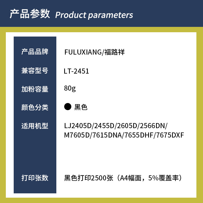 2655dn 2405 2605d m7605d 2455 适用联想2451粉盒LT2451h粉仓