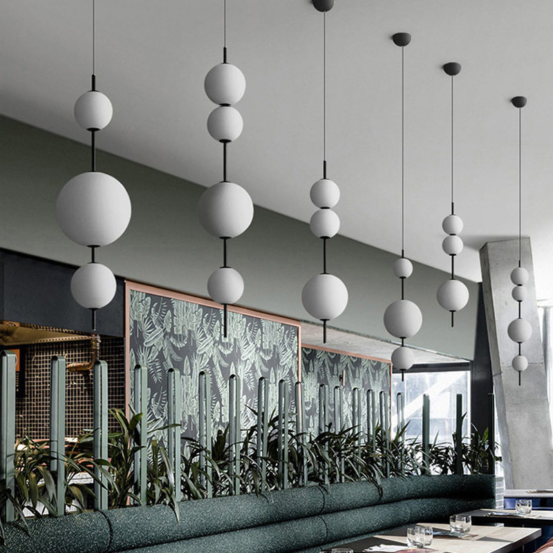 现代简约餐厅吊灯 咖啡厅吧台卧室魔豆玻璃大小球LED灯具 创意个性