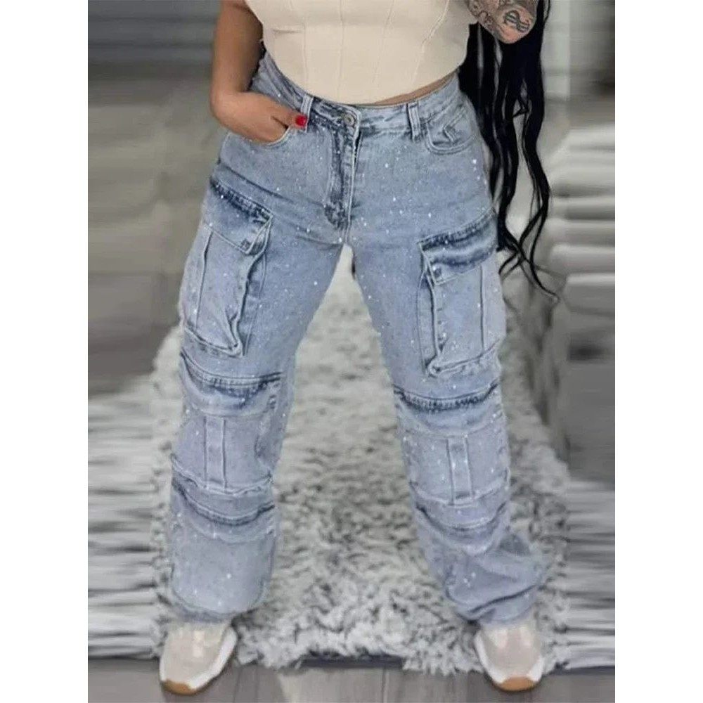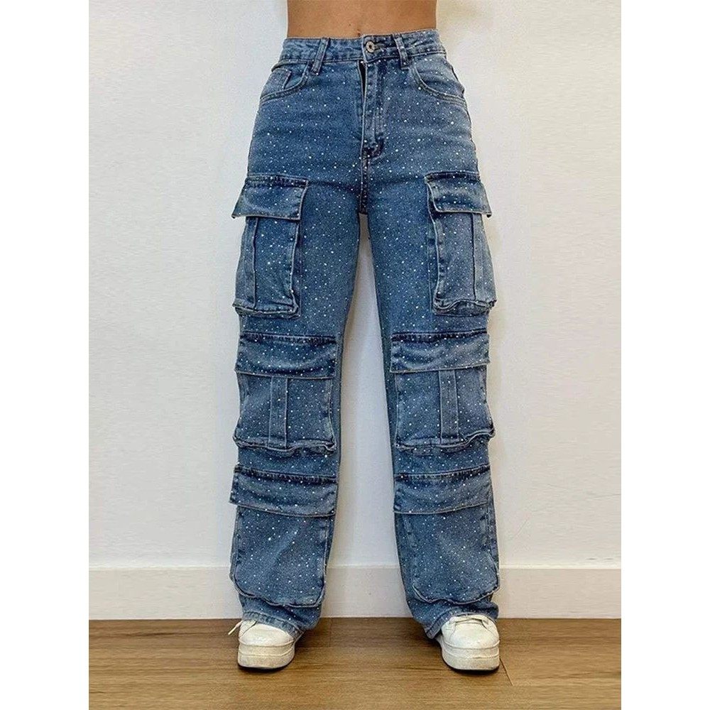 Women Multiple Bright Pocket Chic Drill Jeans CPSYMYM Work