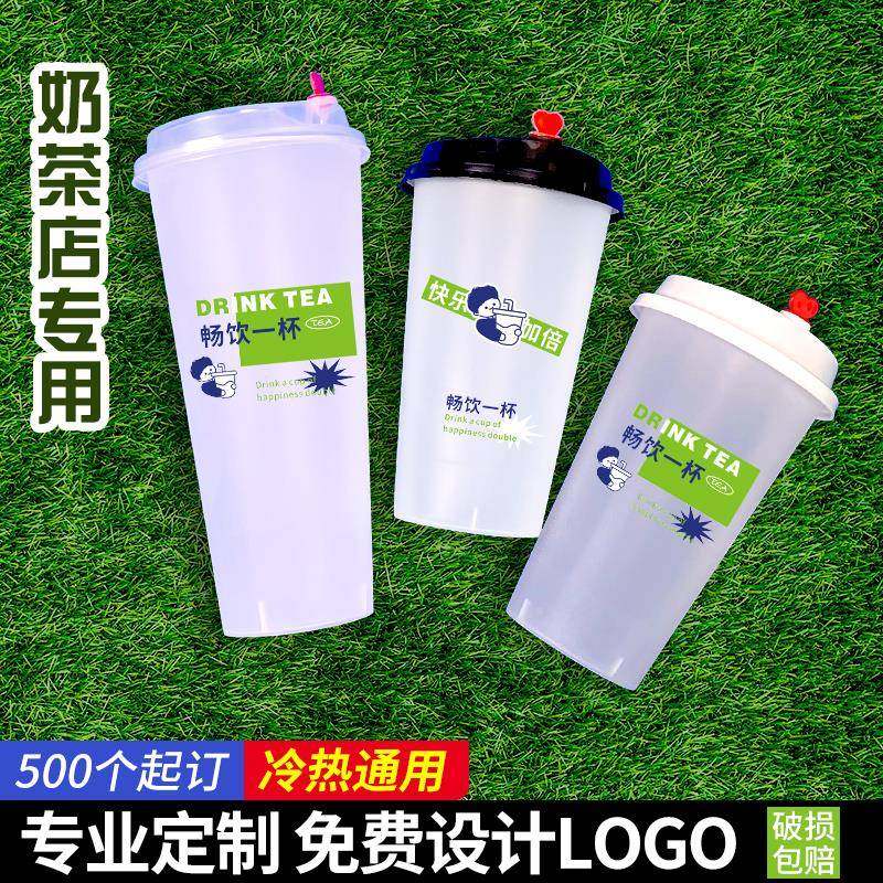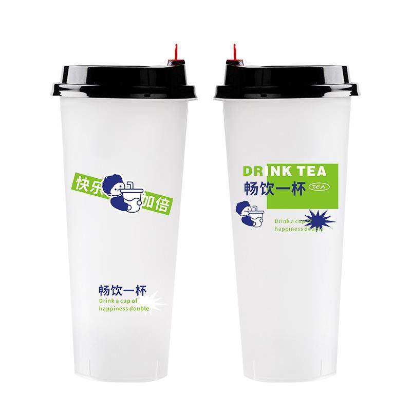 奶店新款 90茶口径一次性奶茶制杯子700ml商用注塑UMR磨砂杯定log