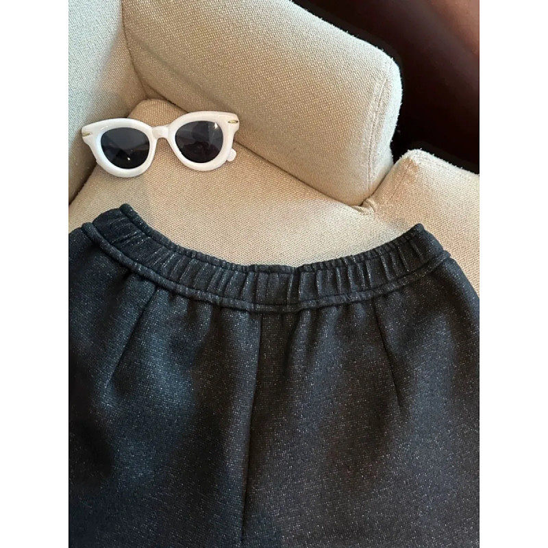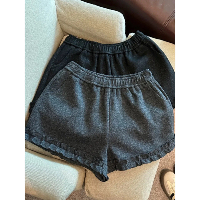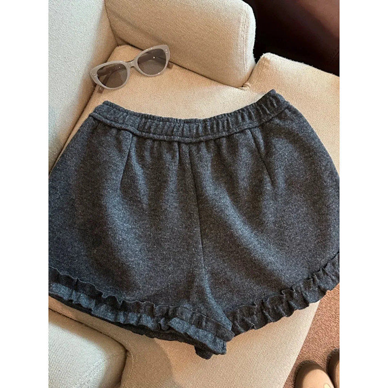 时尚 女显瘦休闲a字靴裤 设计感冬季 木耳花边灰色毛呢短裤 新款 大码
