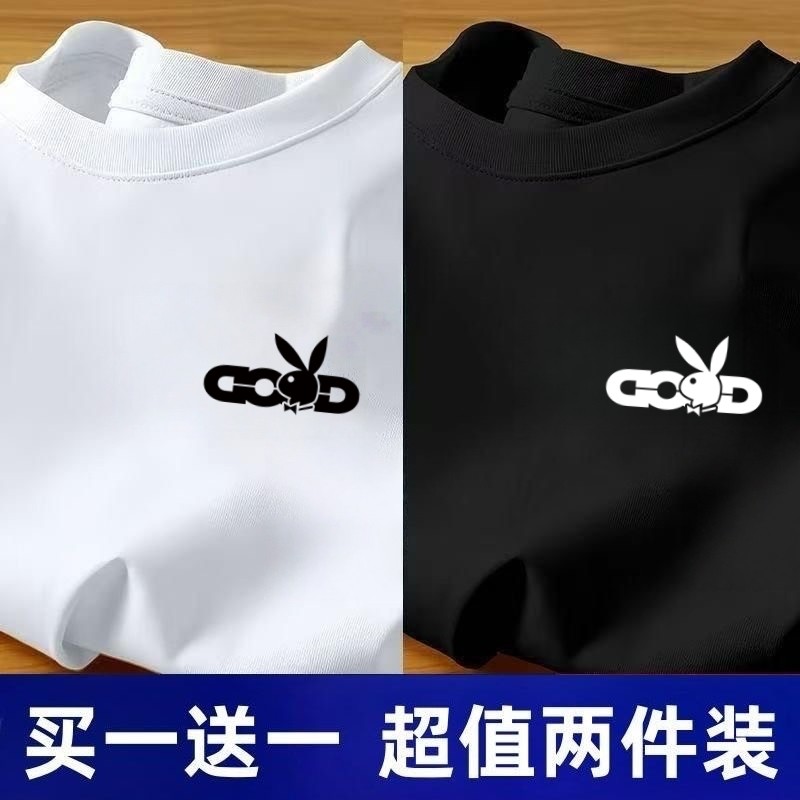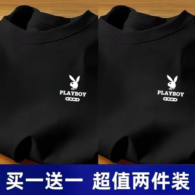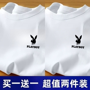 PLAYBOY花花公子夏季 T恤男女宽松休闲百搭简约圆领上衣男 纯棉短袖