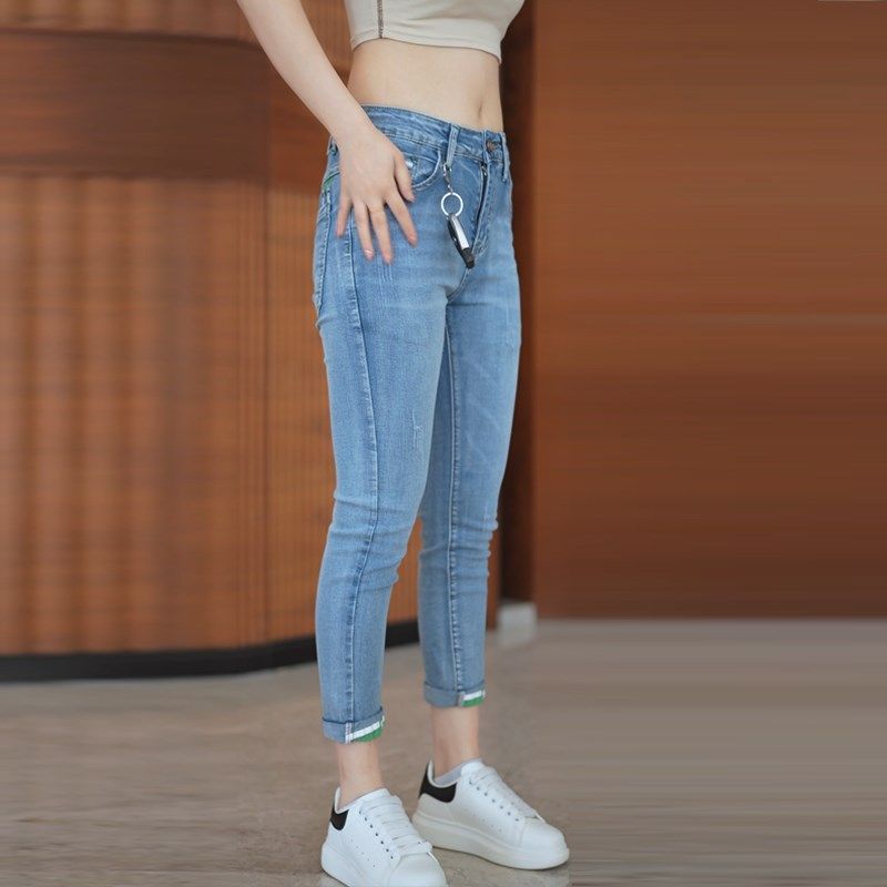 男士 小脚休闲潮流印花9分小直筒薄款 2024夏季 修身 新款 九分牛仔裤
