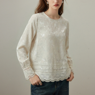 圆领内搭打底衫 dfvc天丝亚麻复古提花长袖 新款 女2026年春季 薄 衬衫