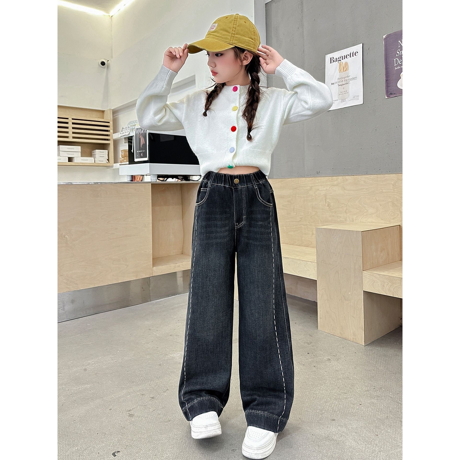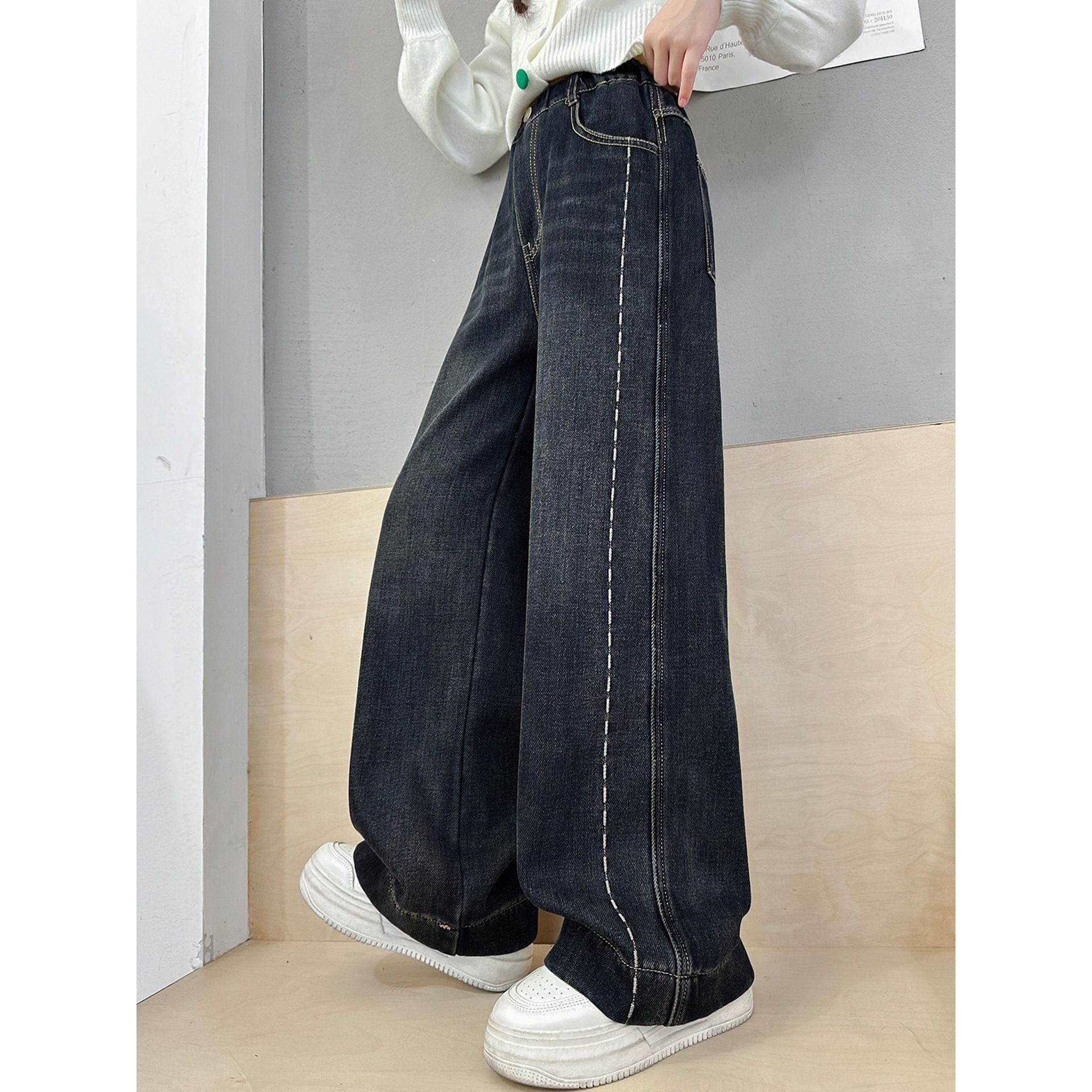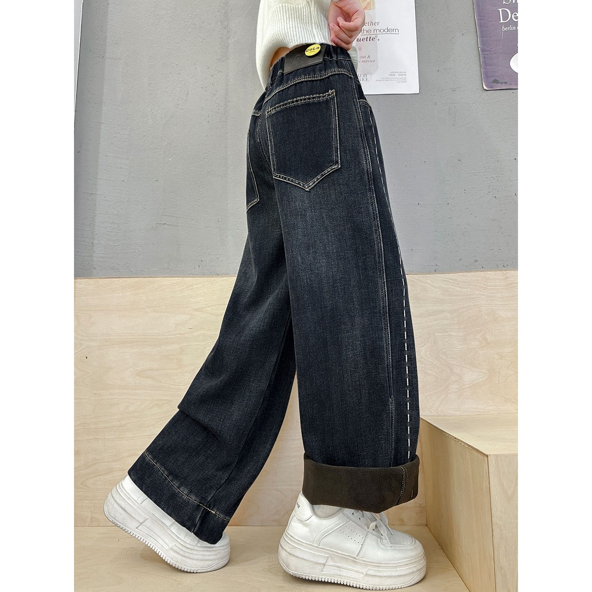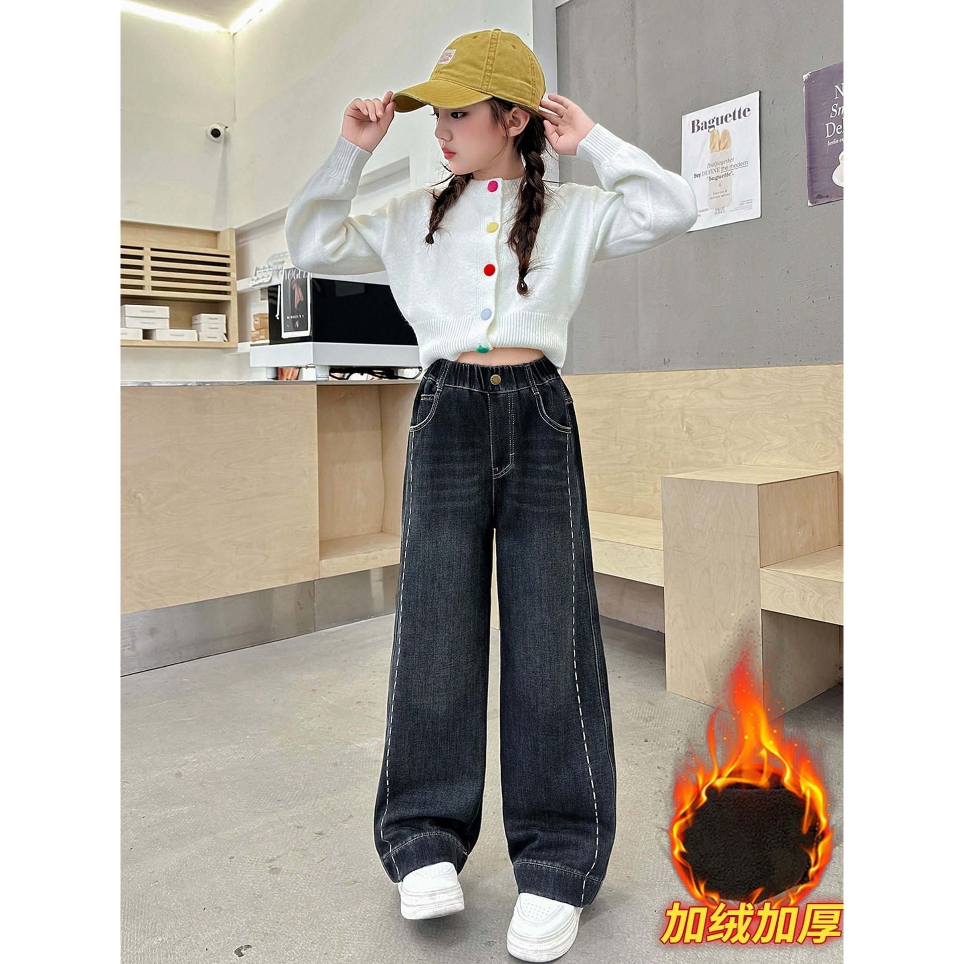 加绒宽松直筒阔腿裤 女童春秋牛仔裤 洋气冬装 中大儿童韩版 2025新款