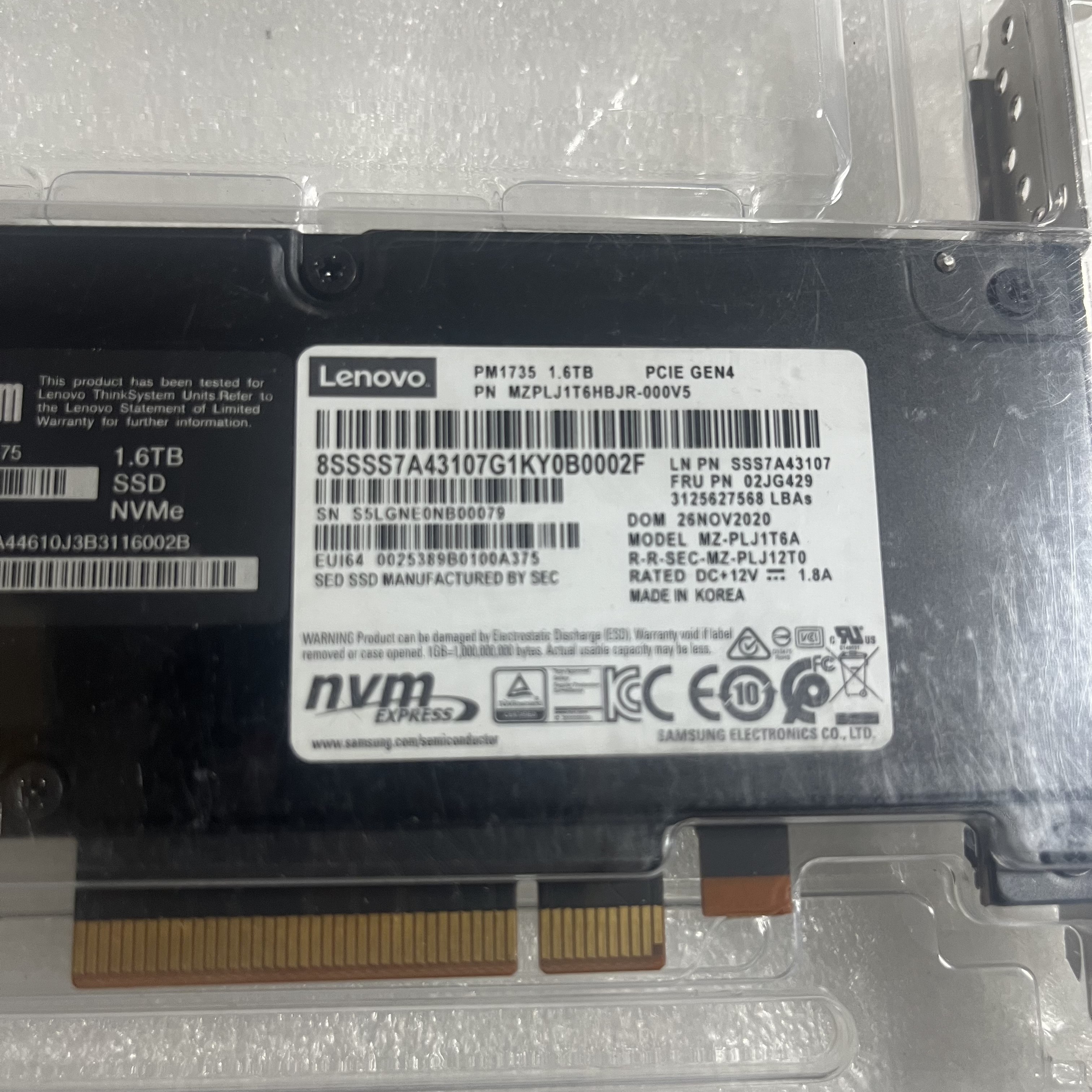 型号4XB7A14075 联想ThinkSystem NVMe固态硬盘 PM1735 1.6TB