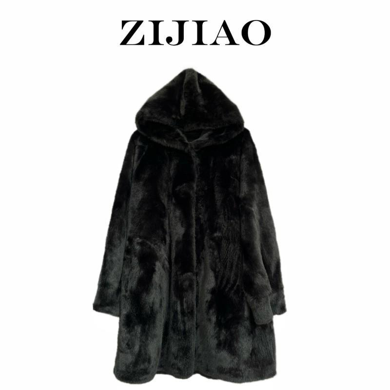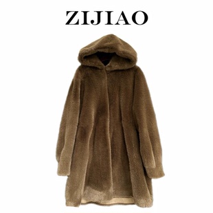 厚大衣 环保毛毛连帽毛茸茸水貂绒中长款 海宁冬季 仿皮草外套女新款