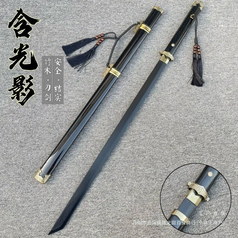 木制唐横刀古风带穗耍花练习竹刀儿童玩具木剑袖 白雪白色木刀宝剑