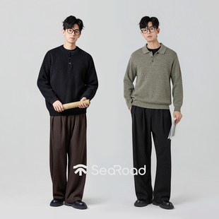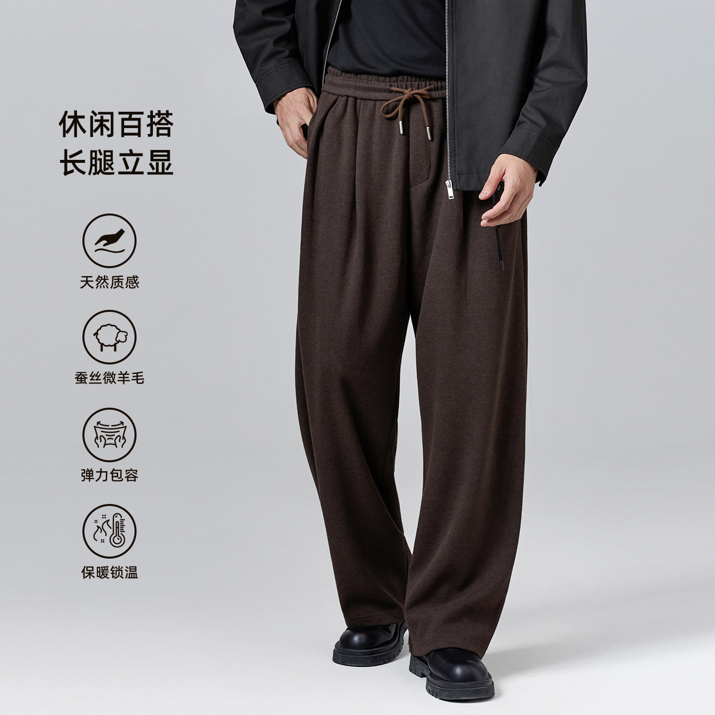 双褶百搭直筒裤 海上公路旗舰店软糯舒适毛呢裤 时尚 2025新款 男士
