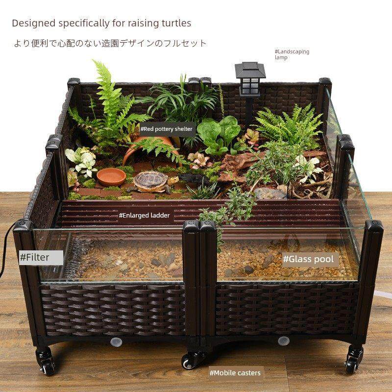 SQG乌龟缸家用带晒台塑料水陆两用家养巴西龟造景别墅生态专用缸
