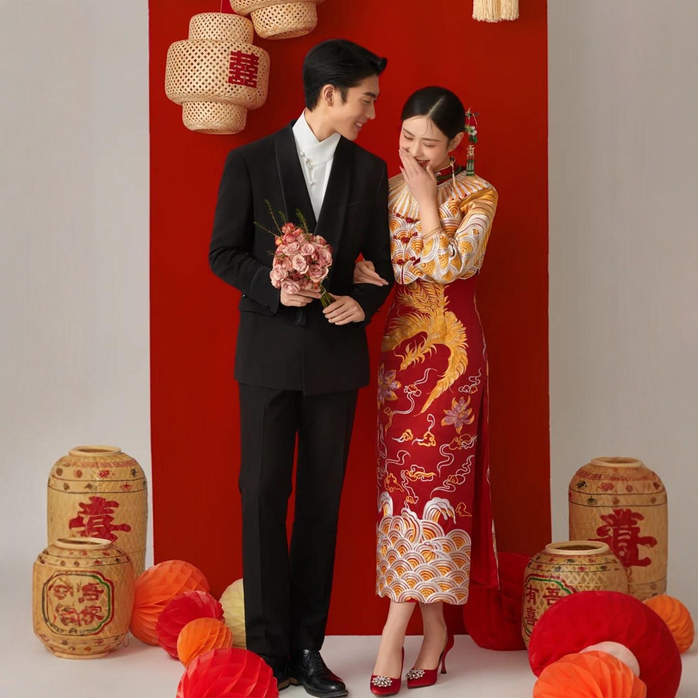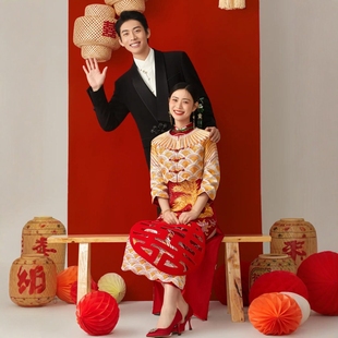 重工结婚中式 新娘冬季 敬酒服 秀禾服旗袍婚服新款 海棠记何超莲同款
