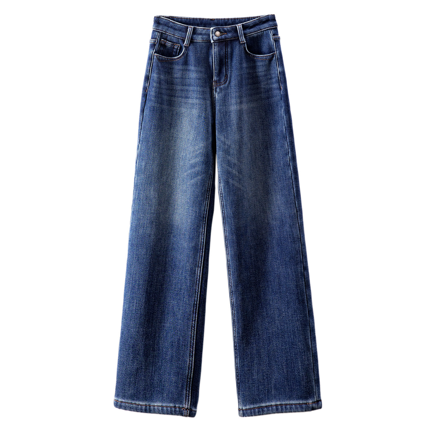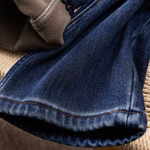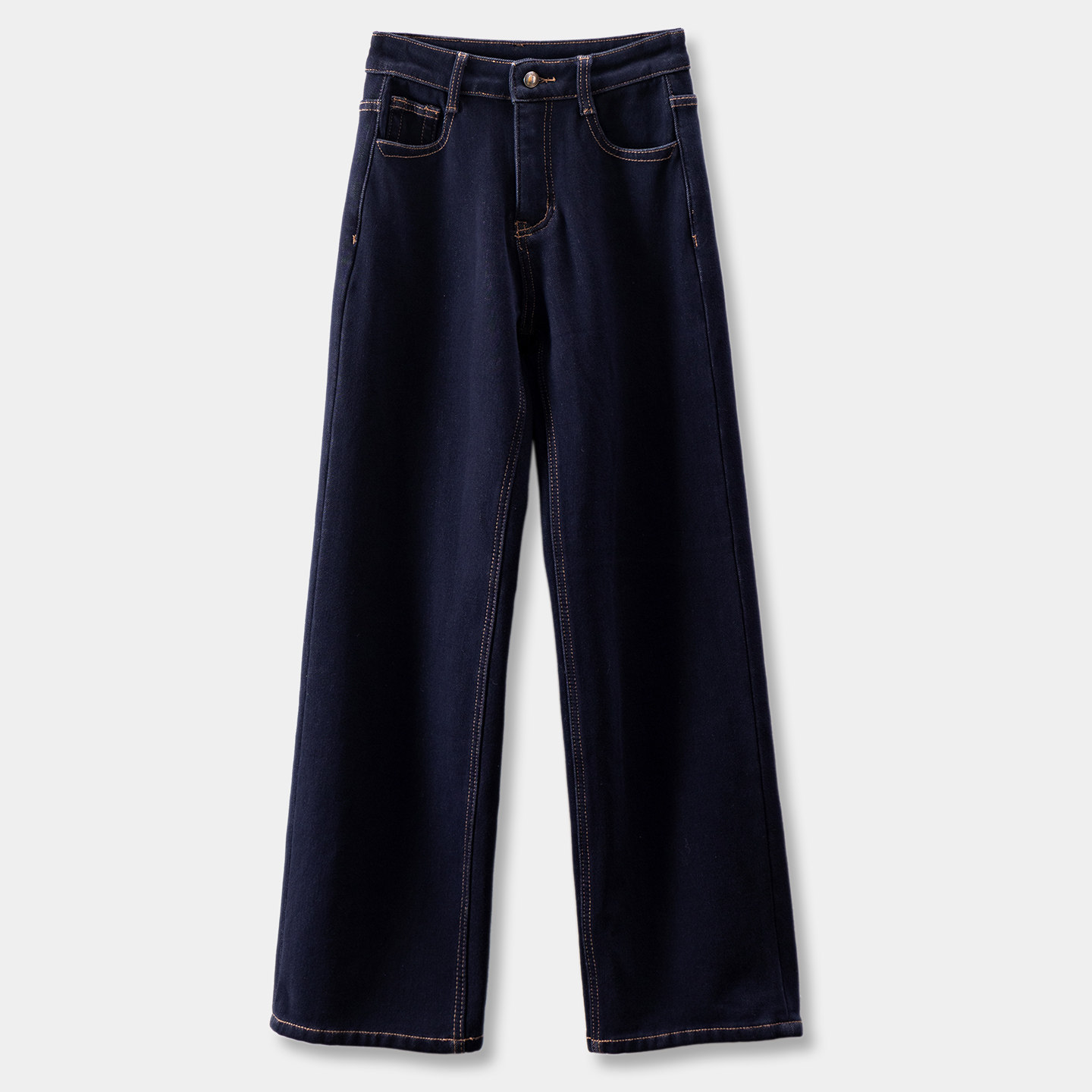 保暖阔腿裤 爆款 子女冬 加厚加绒黑蓝色直筒牛仔裤 一三良品小个子