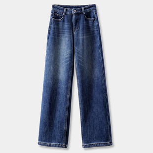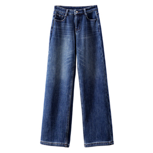 直筒显瘦裤 垂感窄版 子 女秋季 橘子树在哪儿复古高腰蓝色竹节牛仔裤