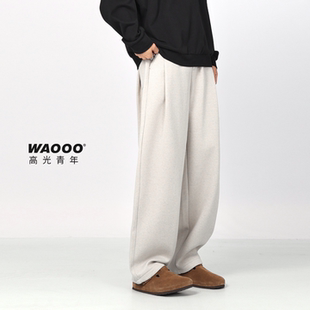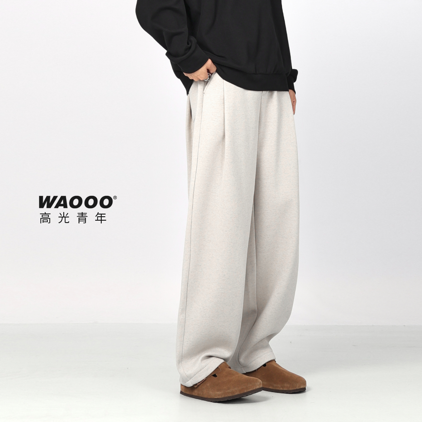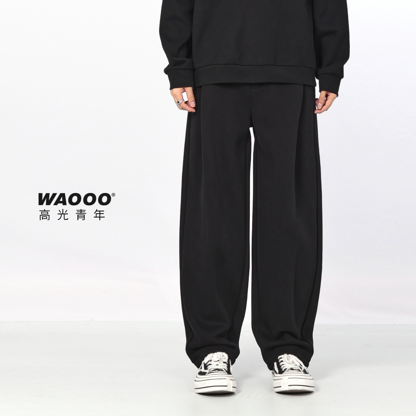 子百搭弯刀裤 WAOOO 黑色垂感加绒加厚长裤 男秋冬新款 休闲裤
