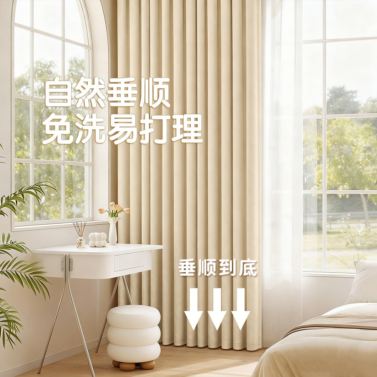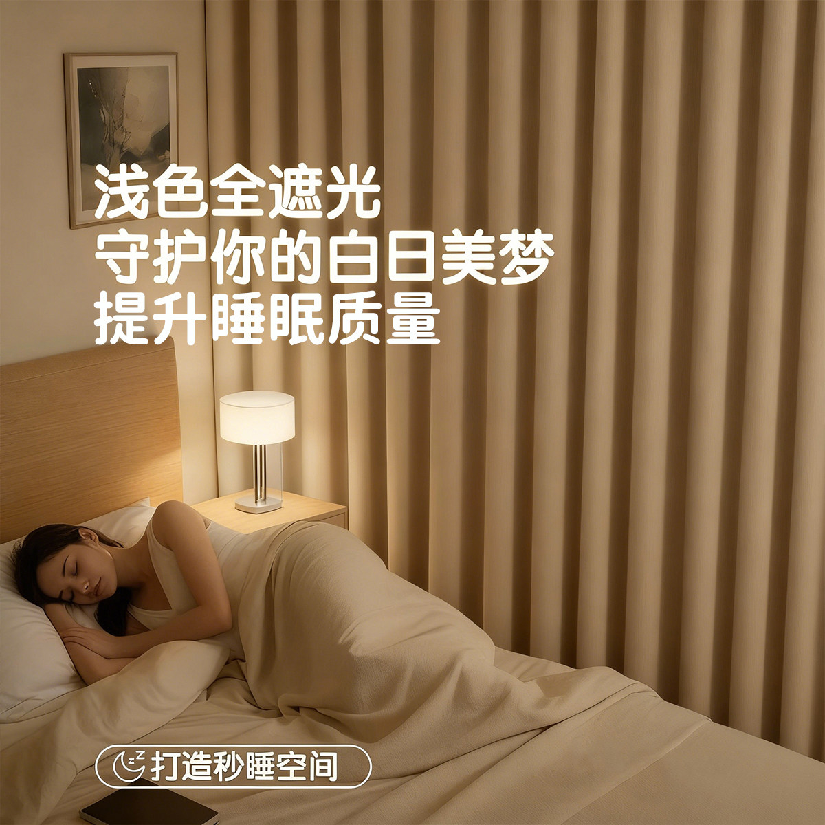 全遮光窗帘100不透光主卧加厚2026新款 防晒隔热遮阳布 卧室挂钩式
