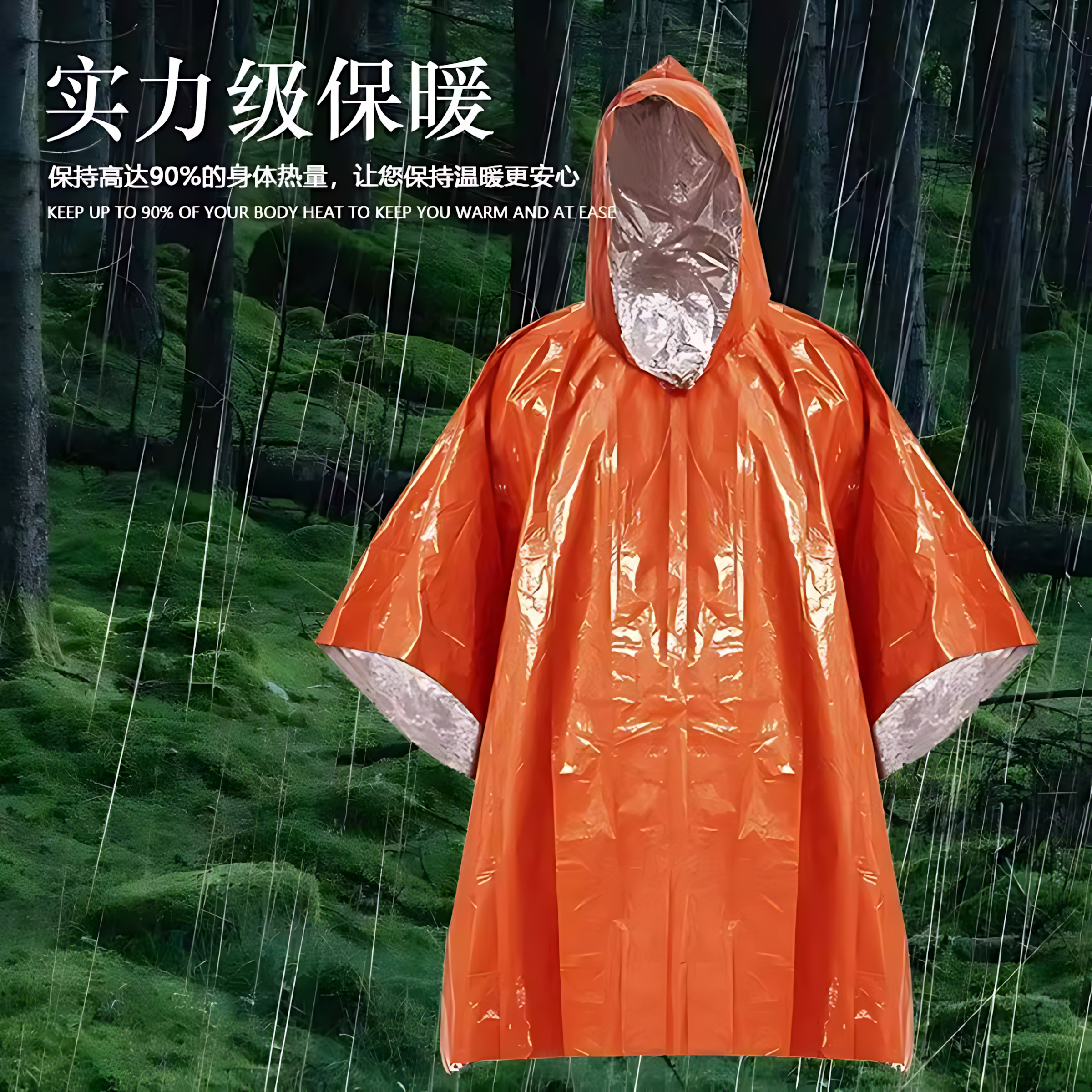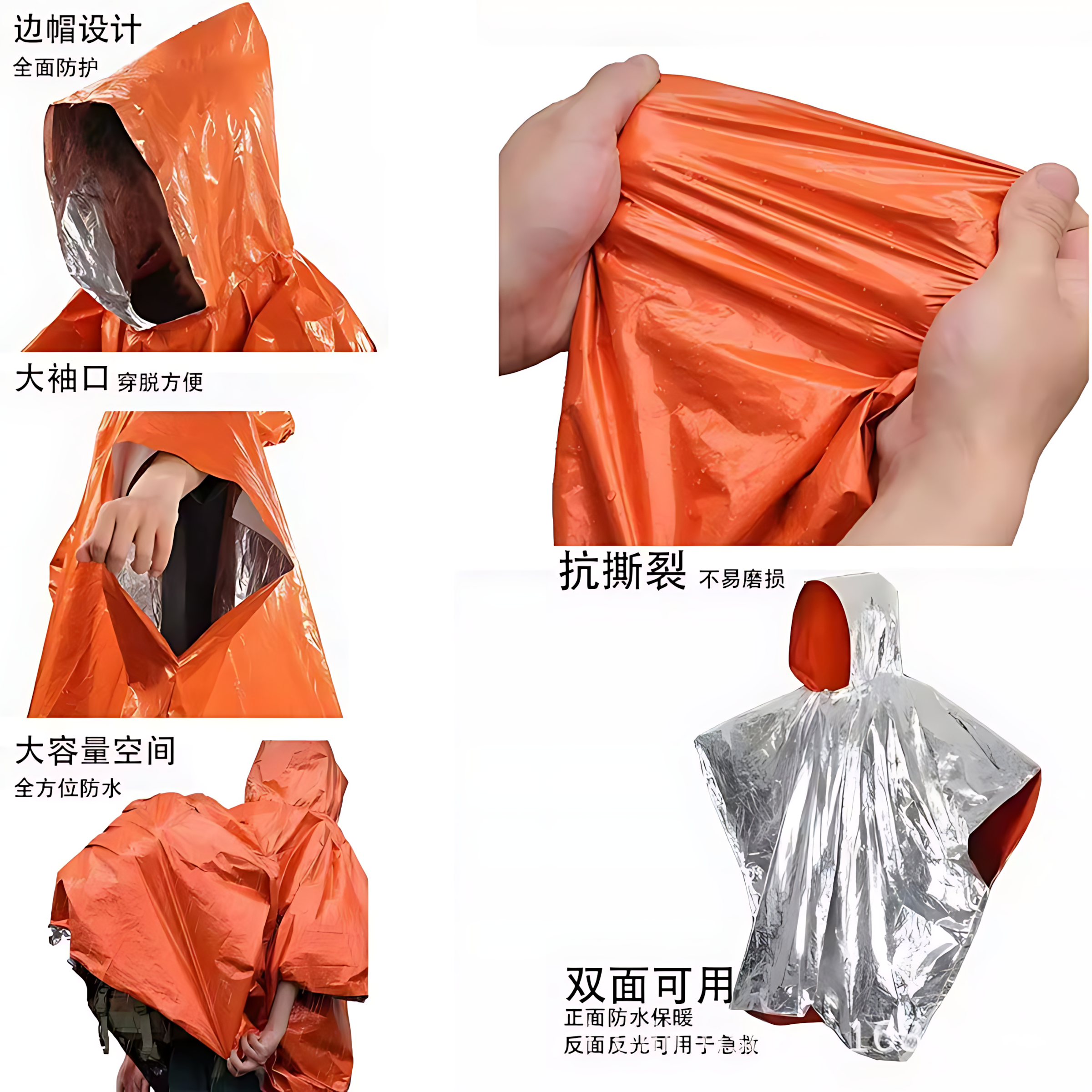 户外便携铝箔式 露营登山徒步保暖雨衣野外求生求救防失温雨披应急