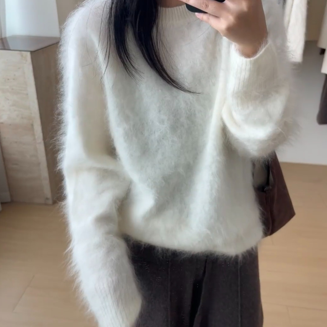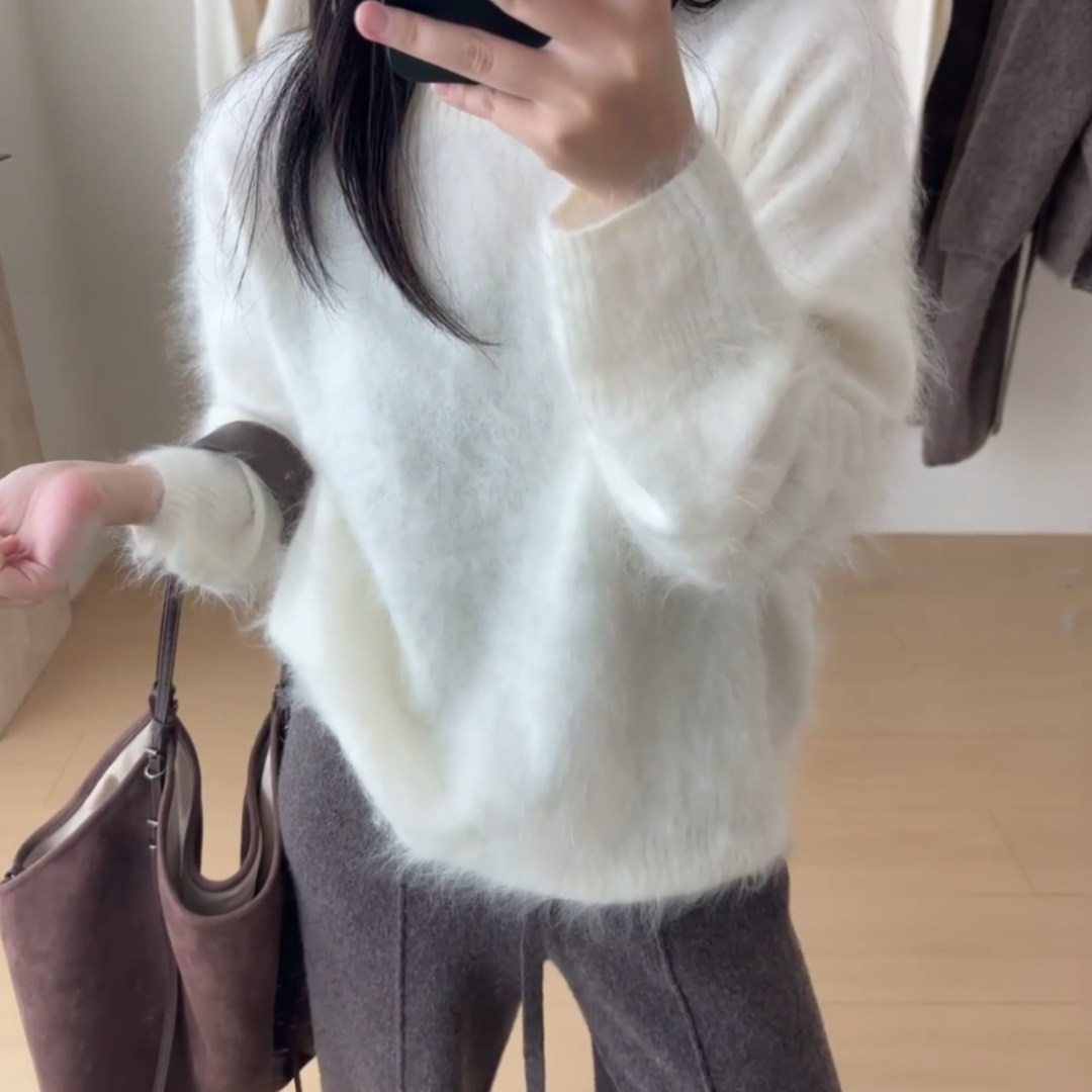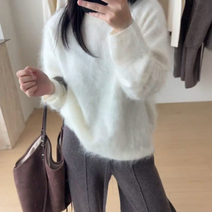 慵懒风高级感软糯针织毛衣女2025冬季 独特漂亮白色宽松上衣潮 新款
