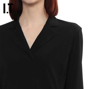 宽松垂感休闲直筒拖地长裤 NEVA 女2025秋季 裤 HU黑色高腰阔腿西装