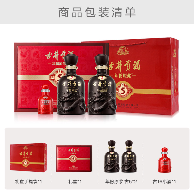 古井贡酒年份原浆古5 2礼盒浓香型白酒 50度500ml