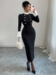 Lienni2025秋冬新款 连衣裙女 高腰显瘦时髦艺术麻花毛衣拼接长款