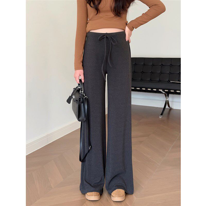 加绒加厚黑灰色显瘦垂感软糯阔腿裤 无托腹孕妇喇叭裤 子外穿秋冬季
