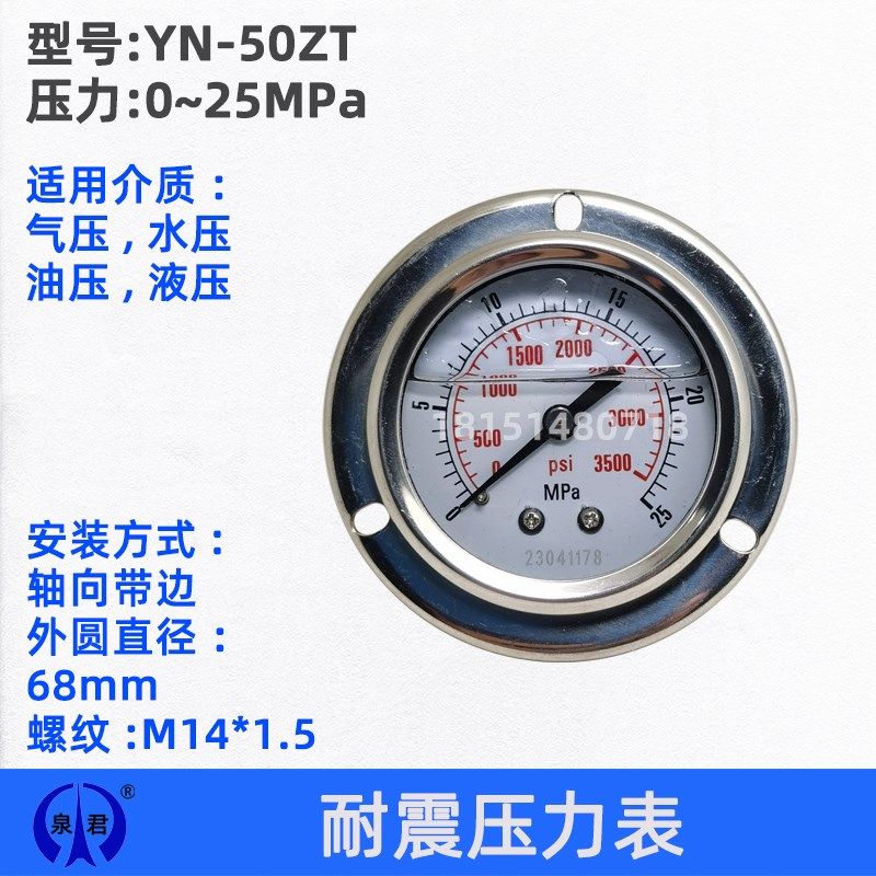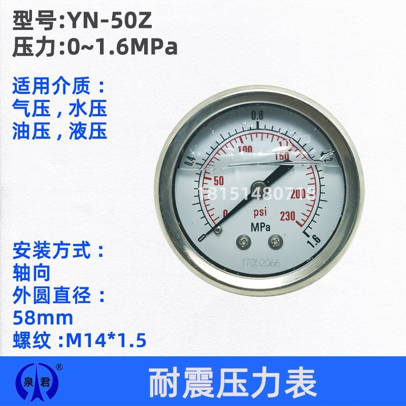 ZU耐震液压油压水压压力表 无锡泉君 1.6MPA YN50