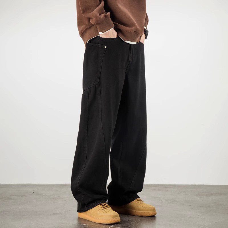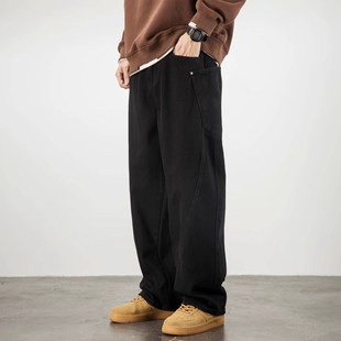 男复古水洗慵懒宽松直筒裤 拖地阔腿牛仔裤 子 美式 kernhafen