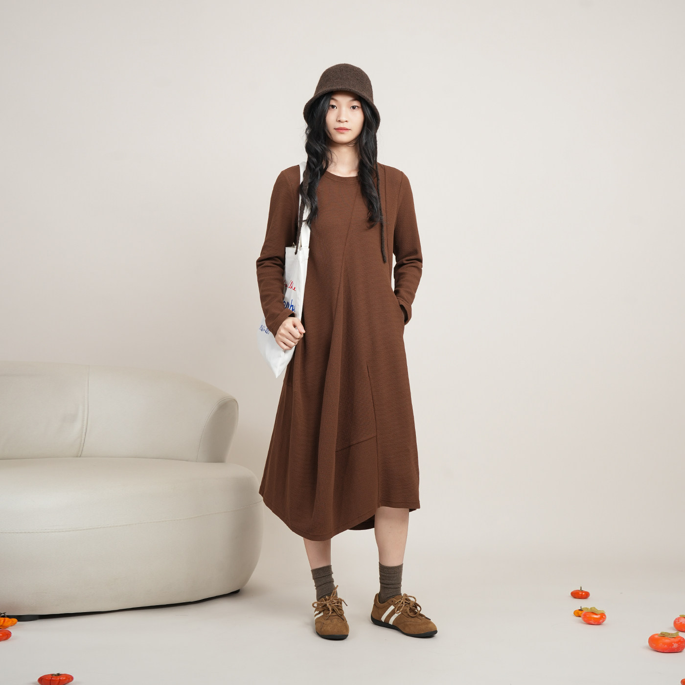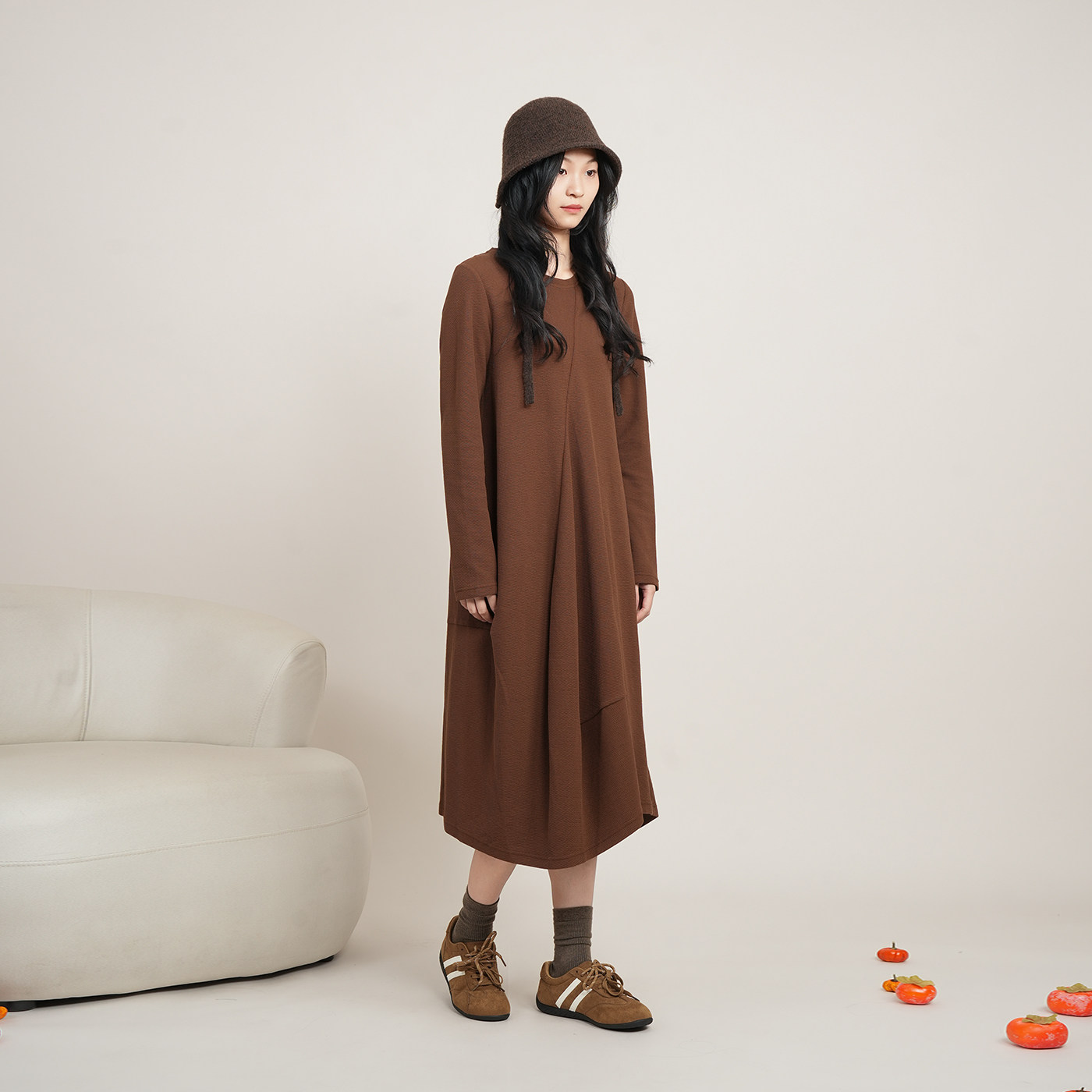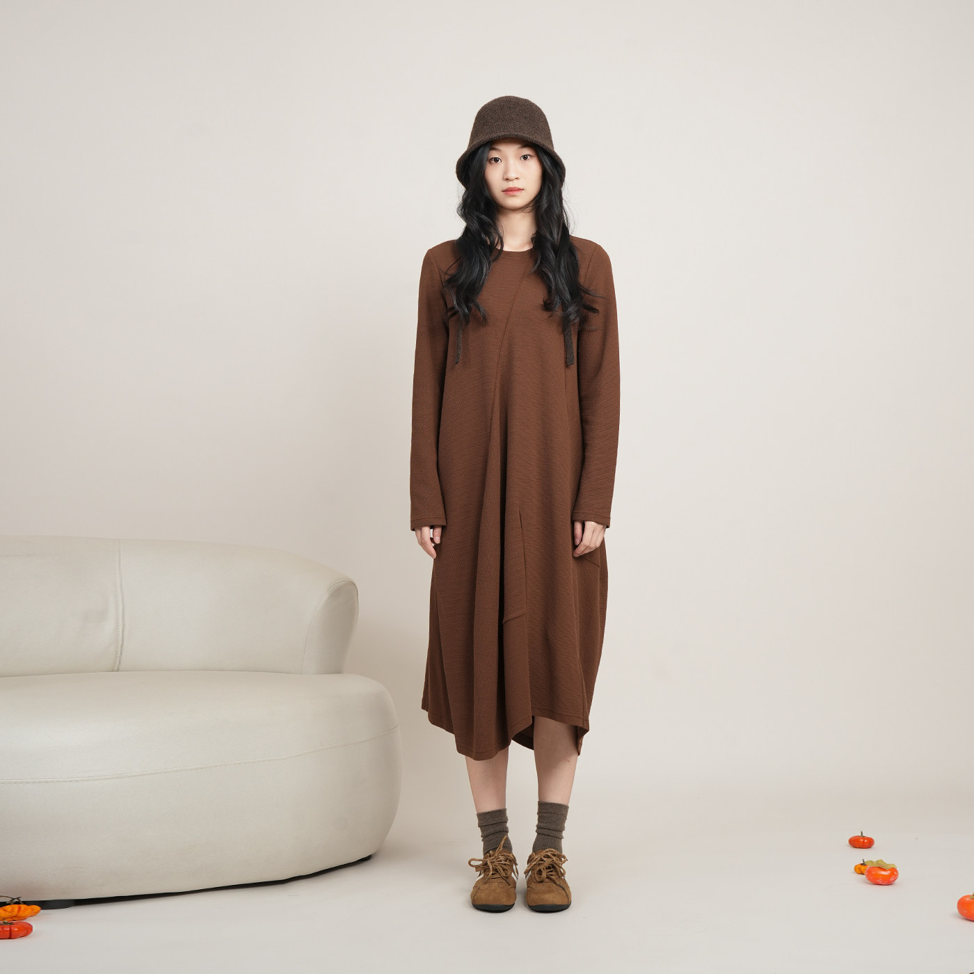 ZOLLE文艺复古风不规则剪裁肌理感廓形长袖 卫衣连衣裙26春
