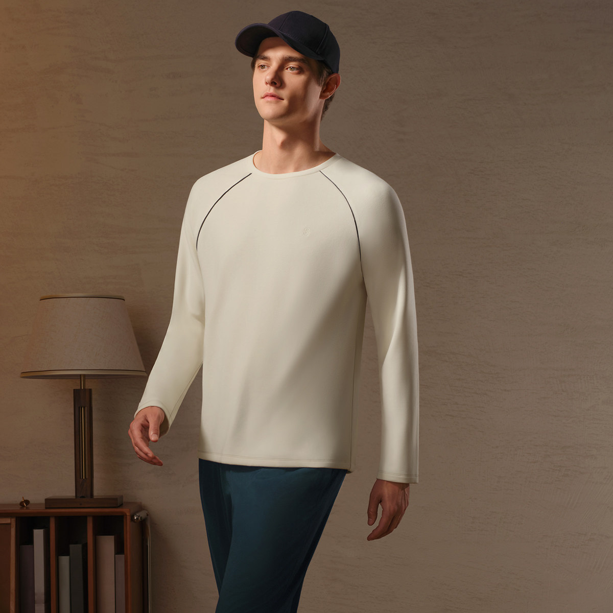 撞色家居服休闲宽松可外穿睡衣上装 安莉芳旗下IVU2025年新款 男士