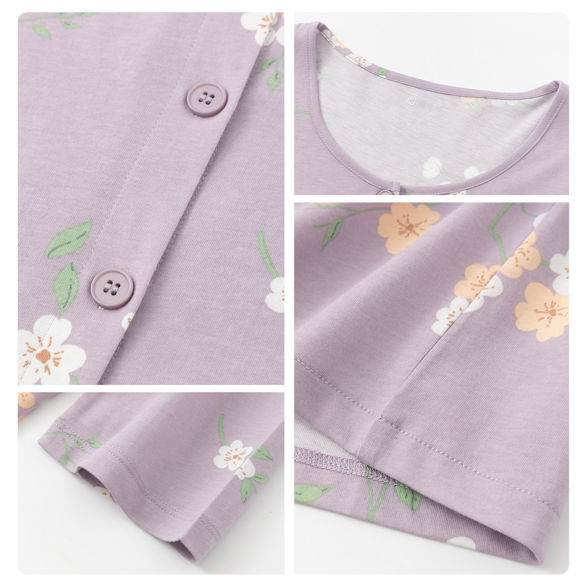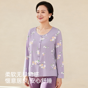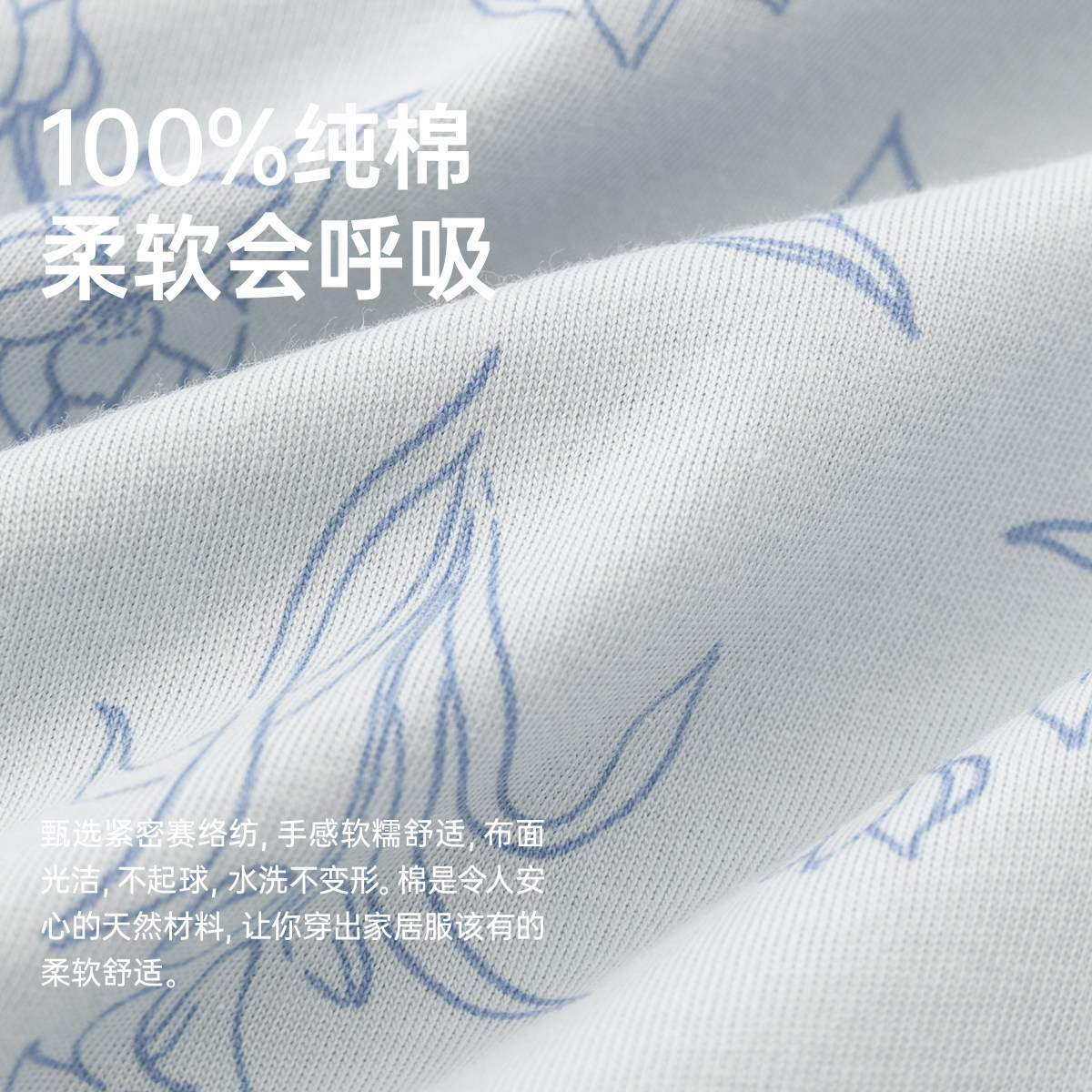 顶瓜瓜顶呱呱天然好棉睡衣上装 开襟圆领印花亲肤透气家居服 女长袖