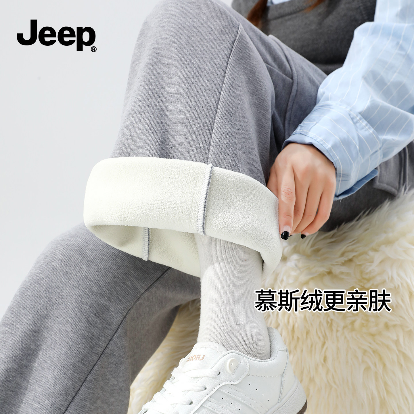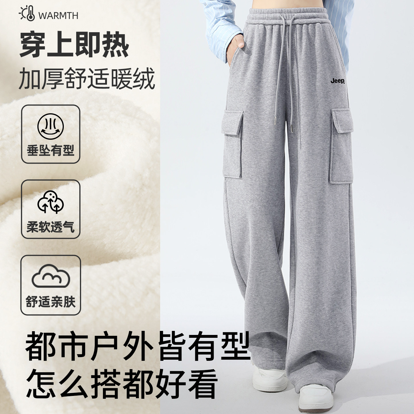 运动卫裤 JEEP吉普灰色加绒裤 裤 冬加厚宽松休闲工装 子女2025新款