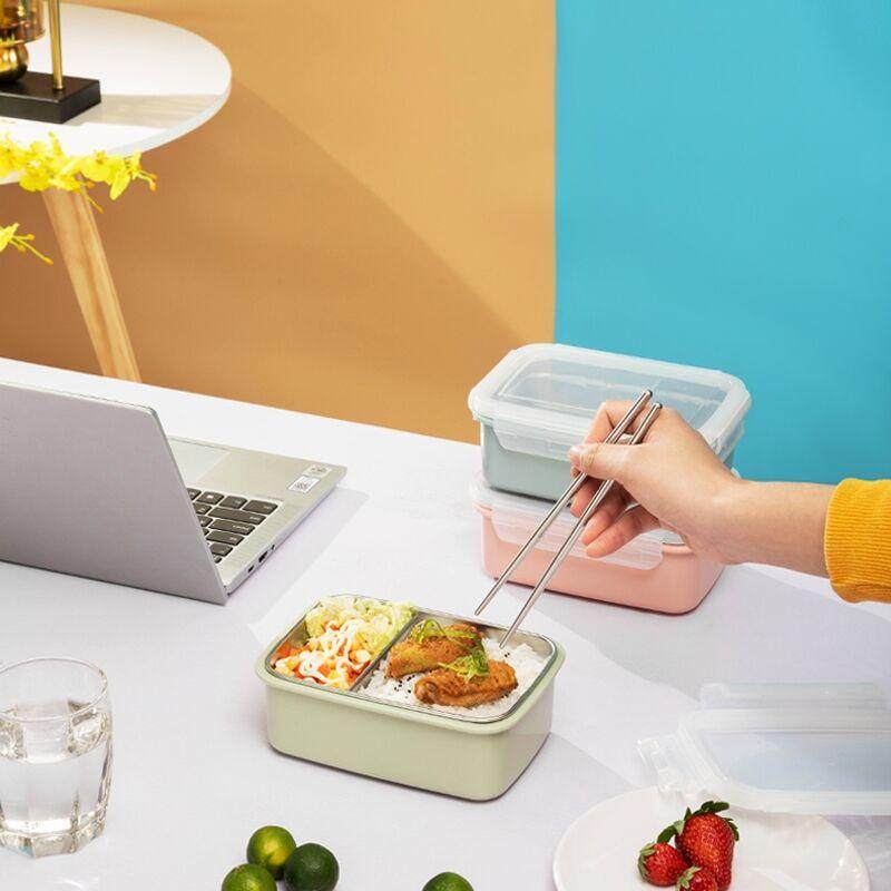304不锈钢餐盒学生分隔饭盒长方形便当盒留样盒收纳盒带盖保鲜盒