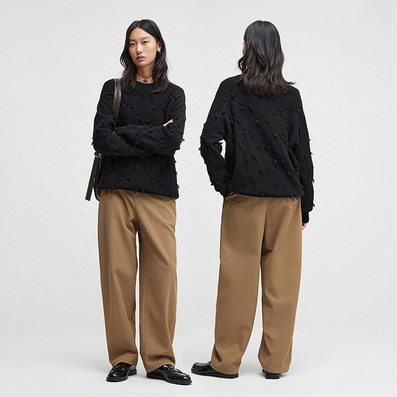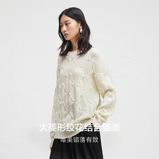 播慵懒风宽松圆领毛衣女2024冬季 温柔气质上衣DDR4SD5056 新款