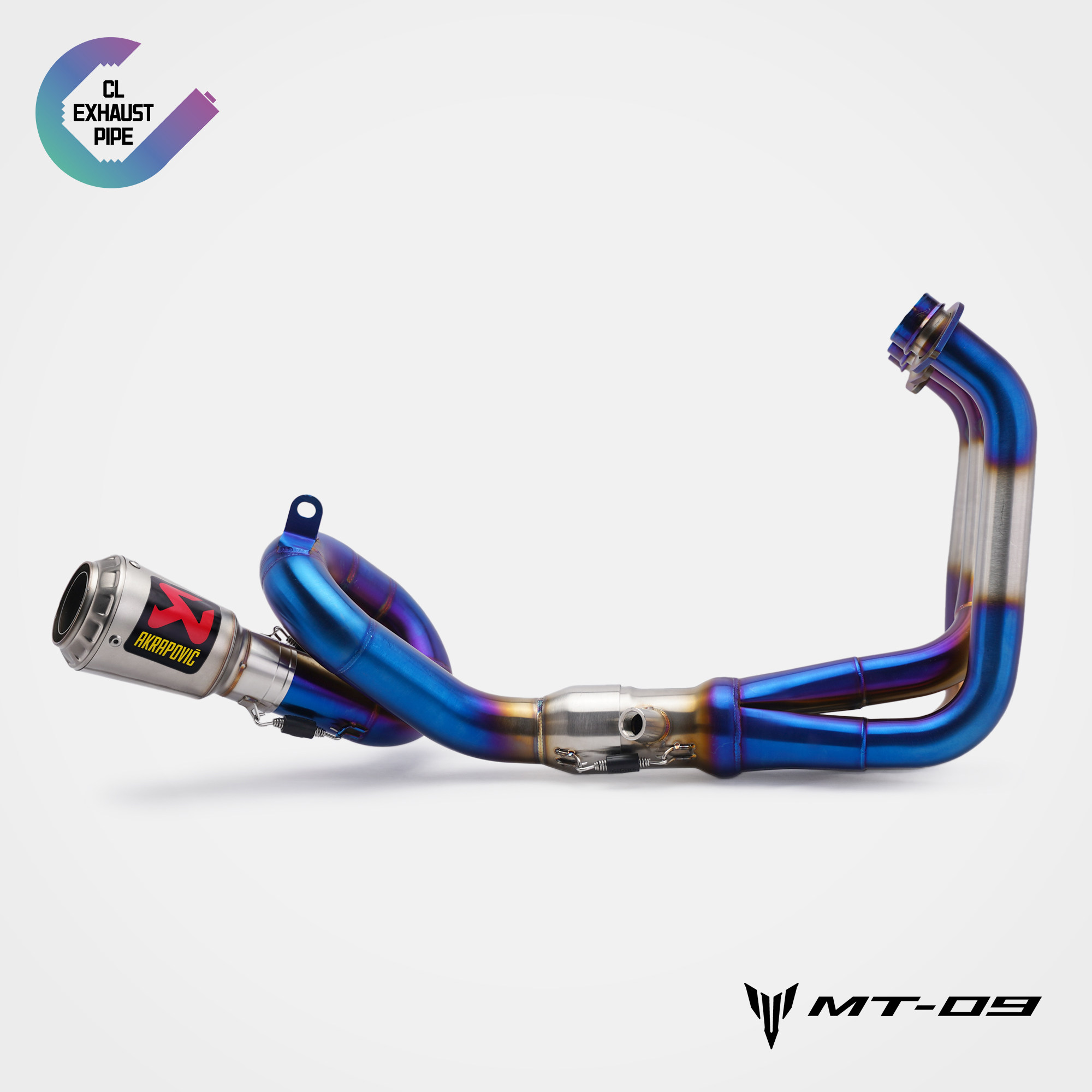 适用14 雅马哈mt09摩托车排气管全段回旋烤蓝不锈钢碳纤维 20款