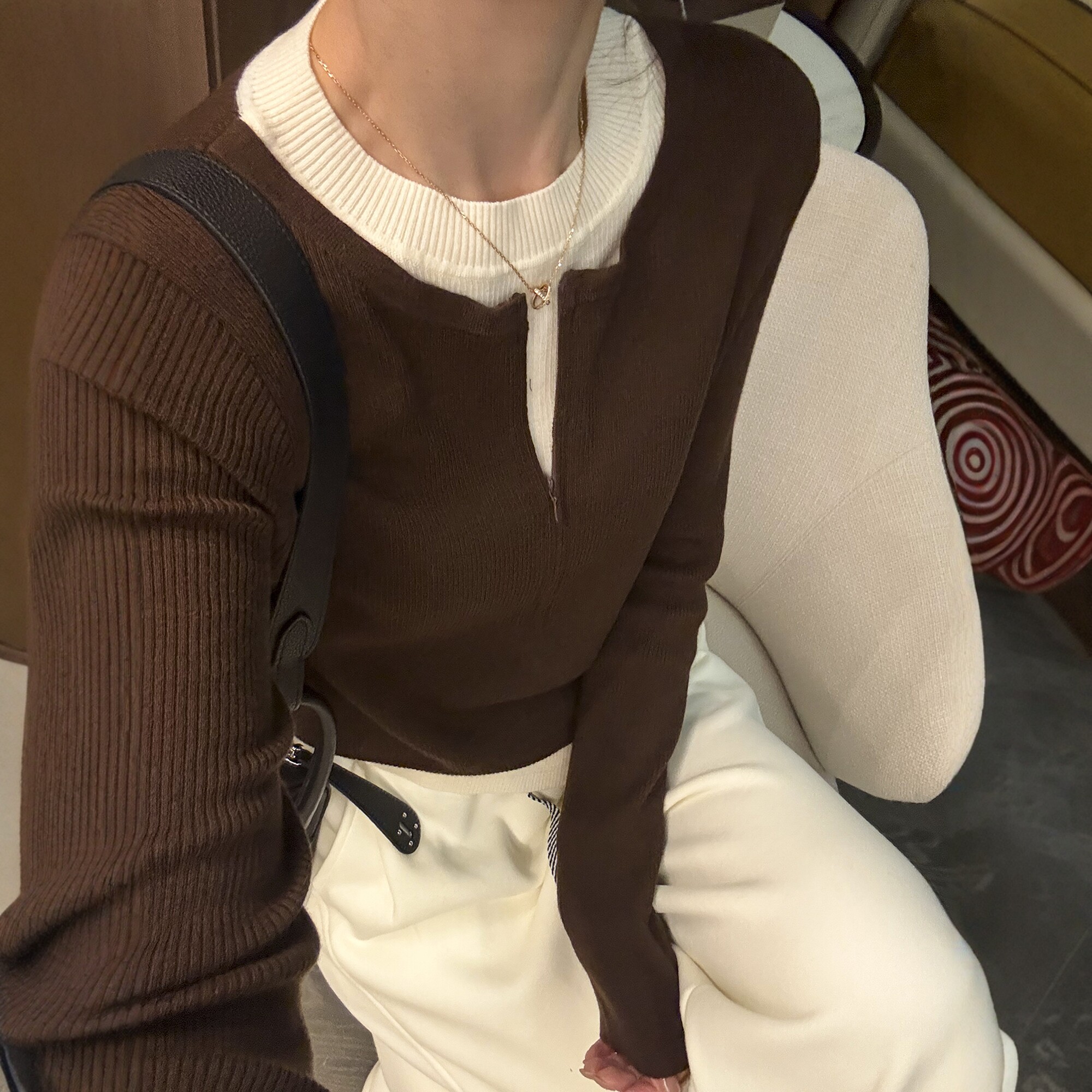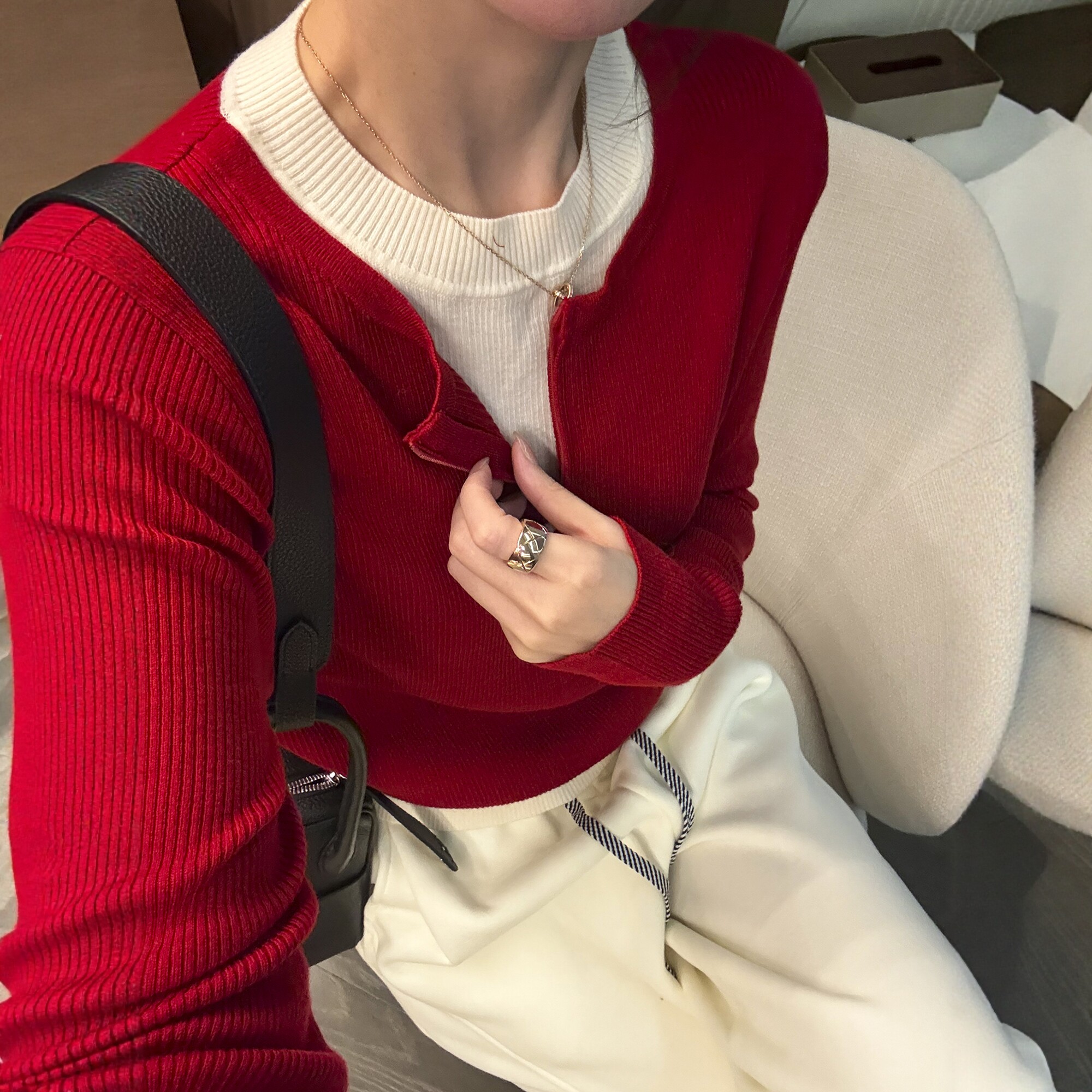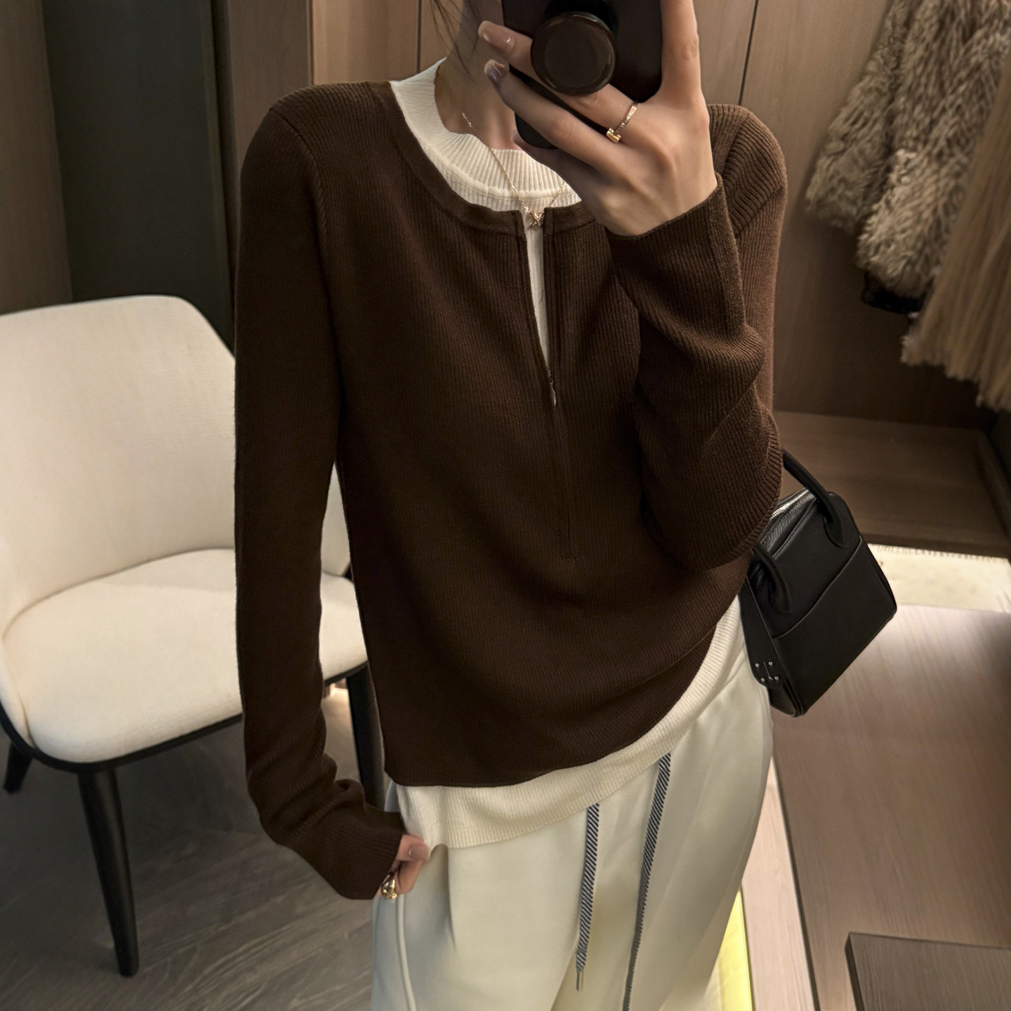 女欧洲站2025冬装 打底小衫 新款 时尚 潮 欧货女装 假两件细羊毛针织衫