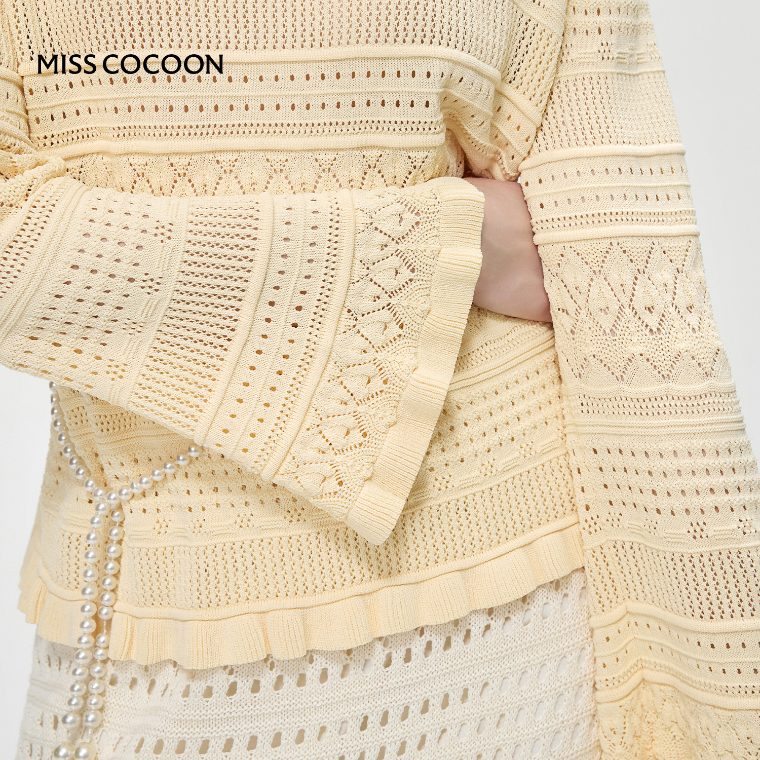 宽松条纹毛针织衫 新款 上衣女2026春季 MISSCOCOON可可尼绿色罩衫