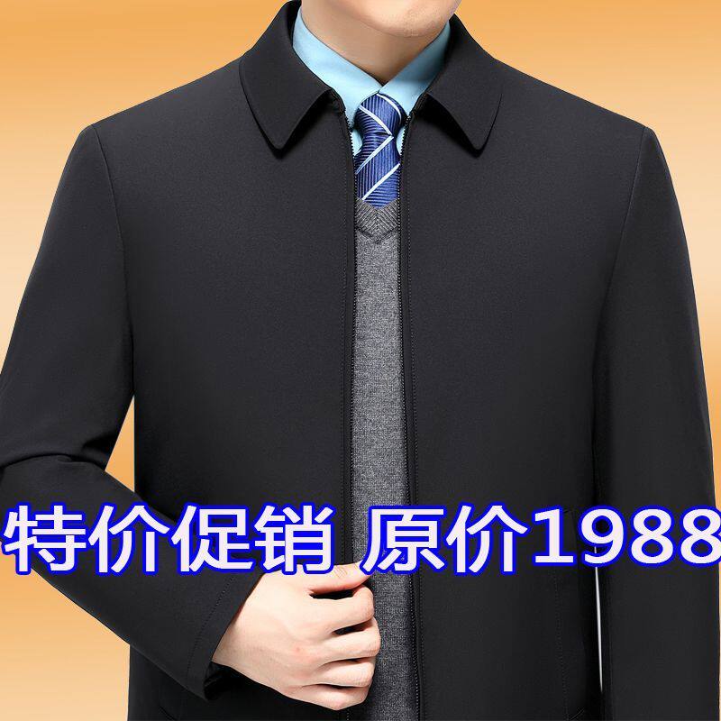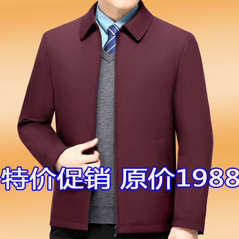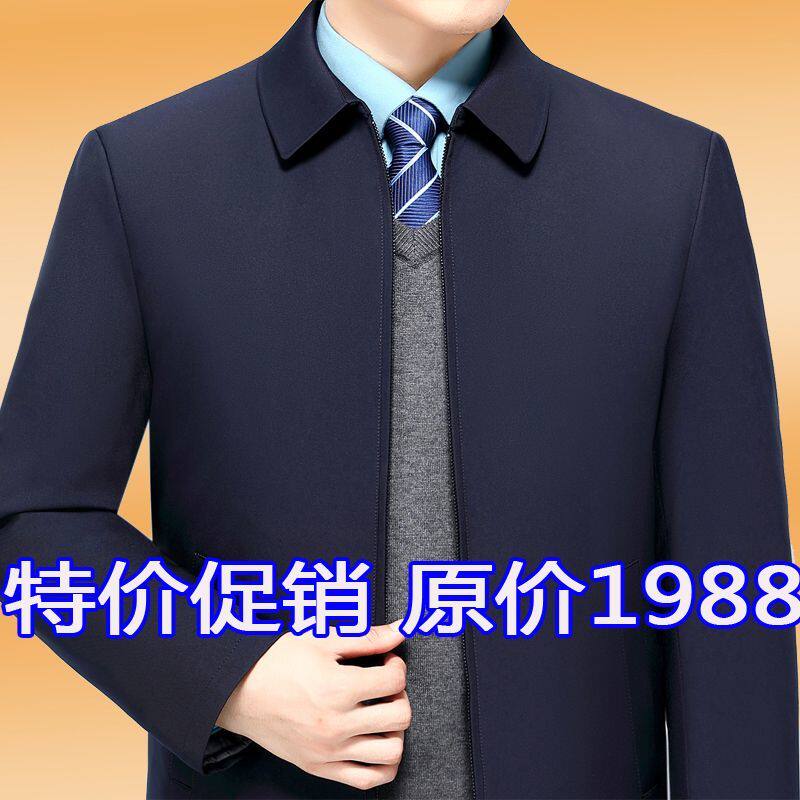 名牌高档棉衣男中年翻领丝绵冬季 加厚棉服领导干部高级外套爸爸装