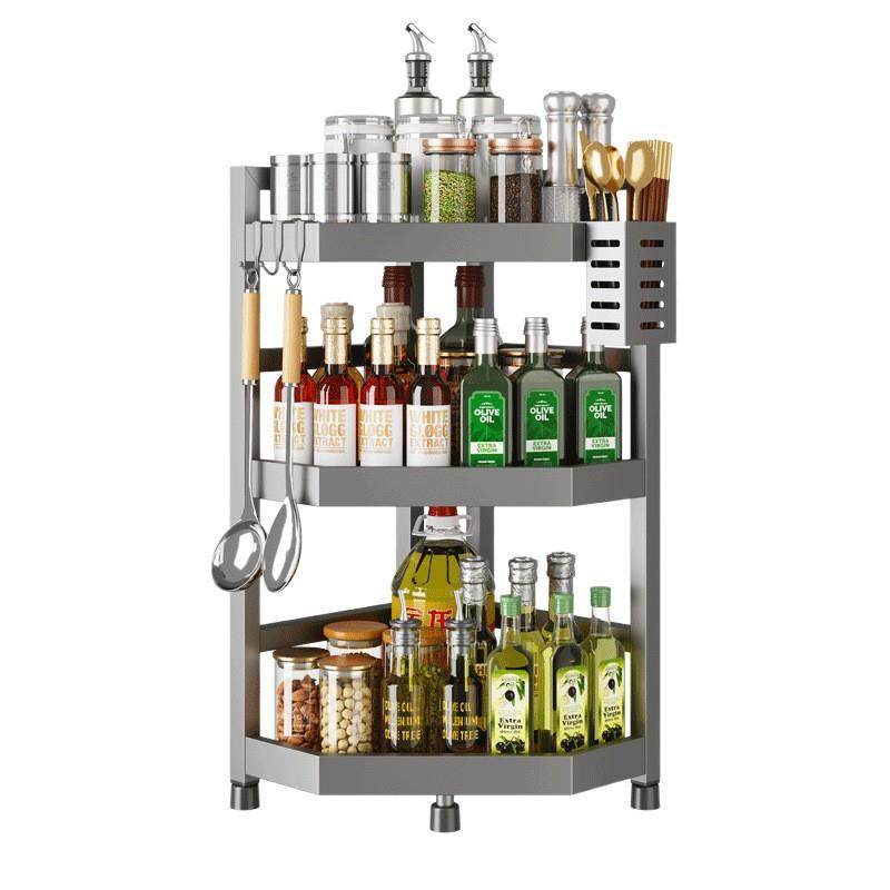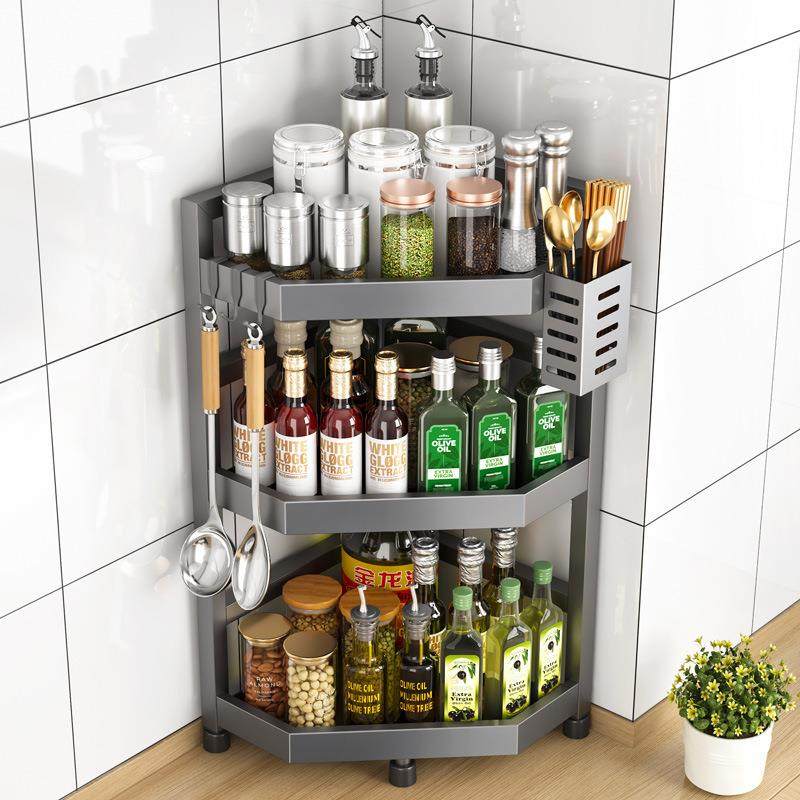 枪灰不锈钢厨房置物架调料架台面放调味瓶品三角转角多功能收纳架
