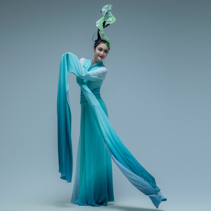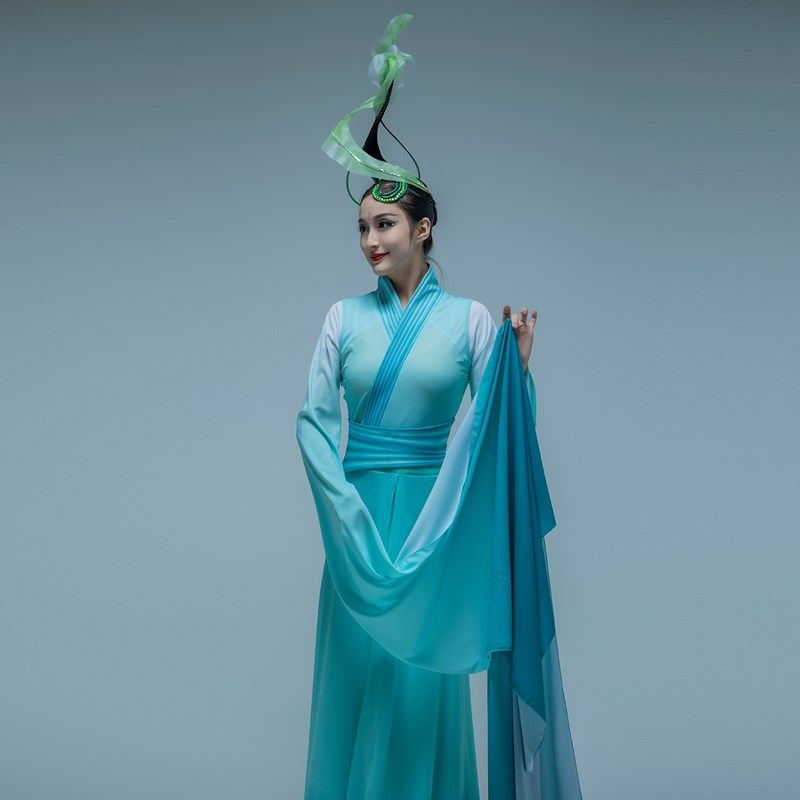 速发古国舞蹈演出服春茶意演水袖 舞蹈表暖服仙气中典风采茶艺服