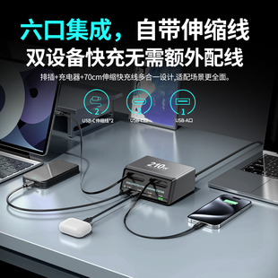 氮化镓桌面充电站伸缩线210W充电器TypeC多口PD45W快充头适用华为苹果17手机iPadPro平板笔记本电脑通用插座