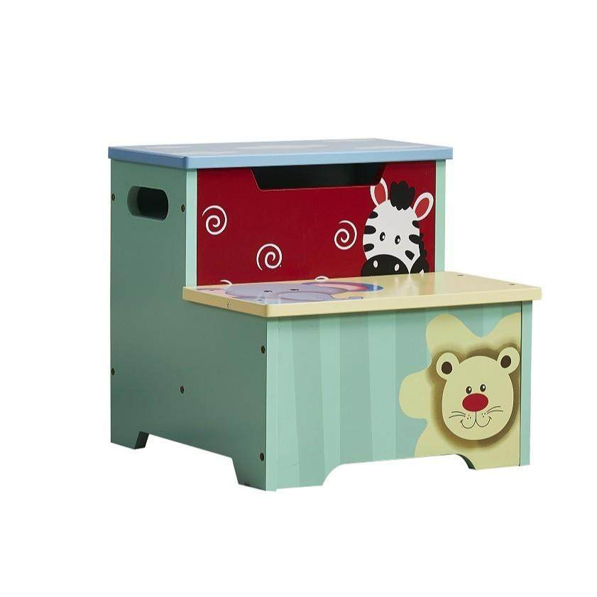 跨境电TEO商出口儿童家具彩色通儿童垫卡脚高凳木制垫凳带储物空