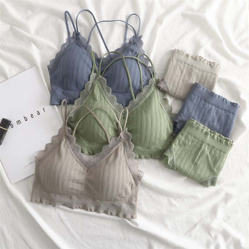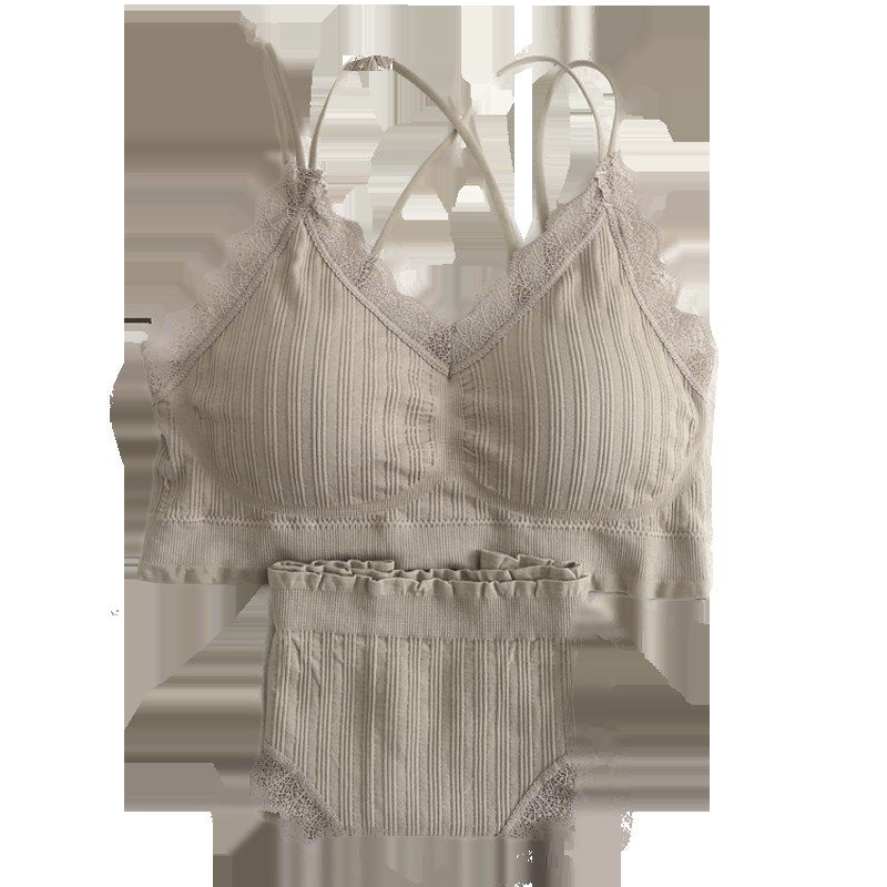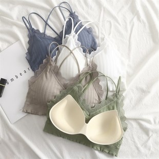 套装 夏季 聚拢小胸罩薄款 少女文胸高中学生内衣裤 黑白色蕾丝抹胸式