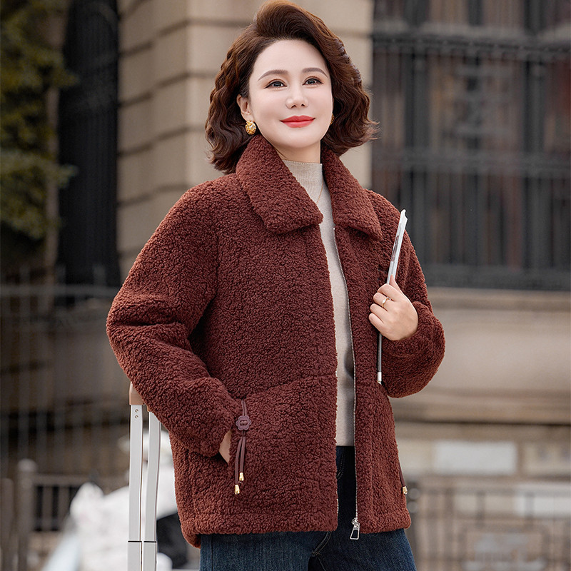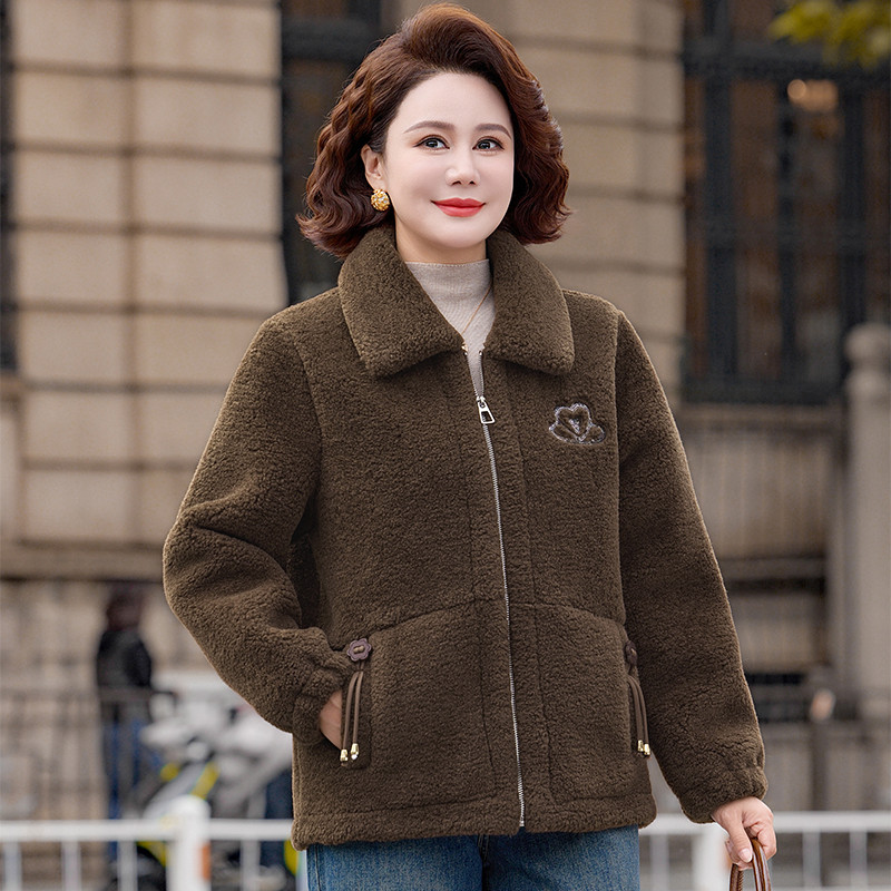 棉服秋冬装 中年妈妈颗粒绒棉衣加绒加厚外套女中老年女装 2025新款