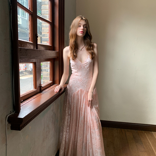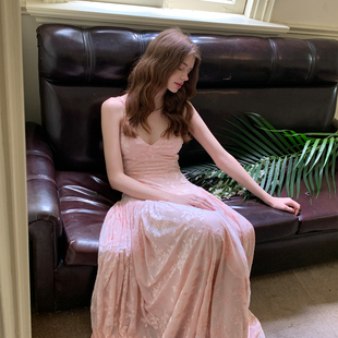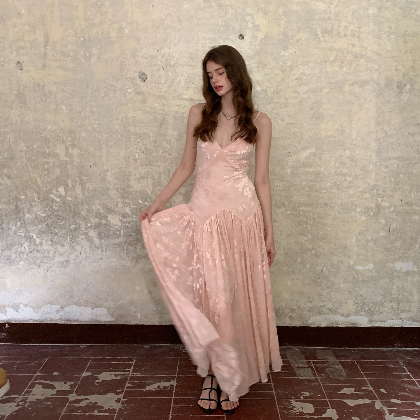 显瘦设计感原创长裙 樱花粉色吊带连衣裙女修身 ZHUYIYI 早秋新款