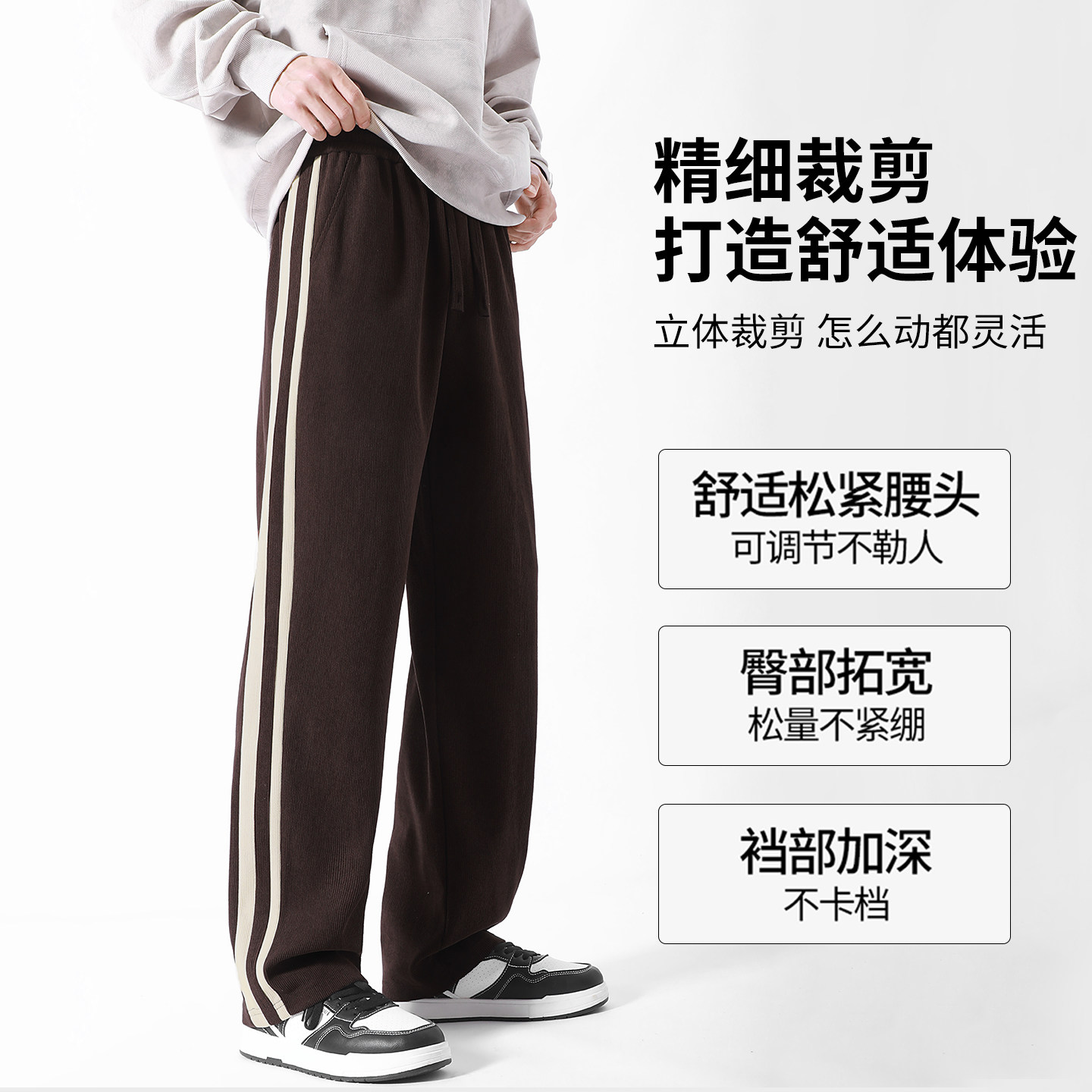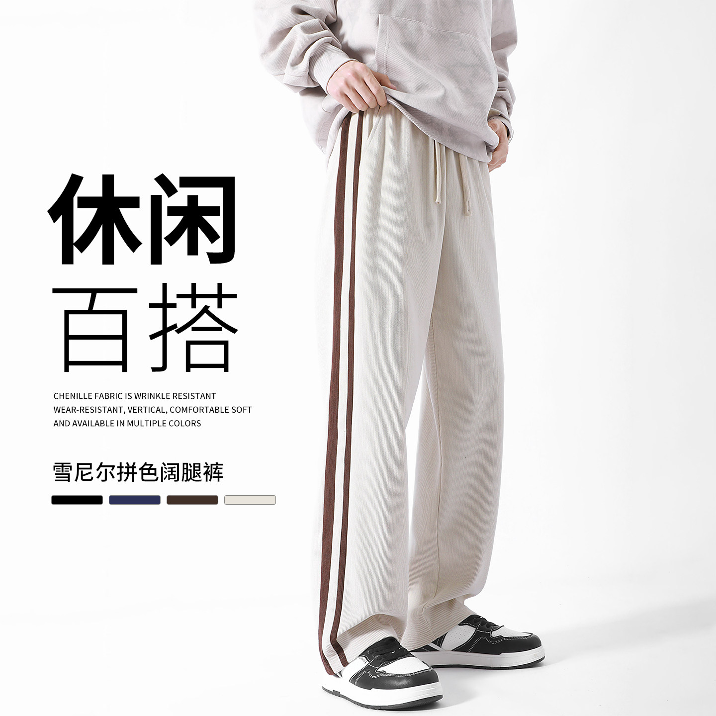 阔腿裤 班尼路雪尼尔长裤 青少年重磅侧分拼接条纹男士 新款 男秋季